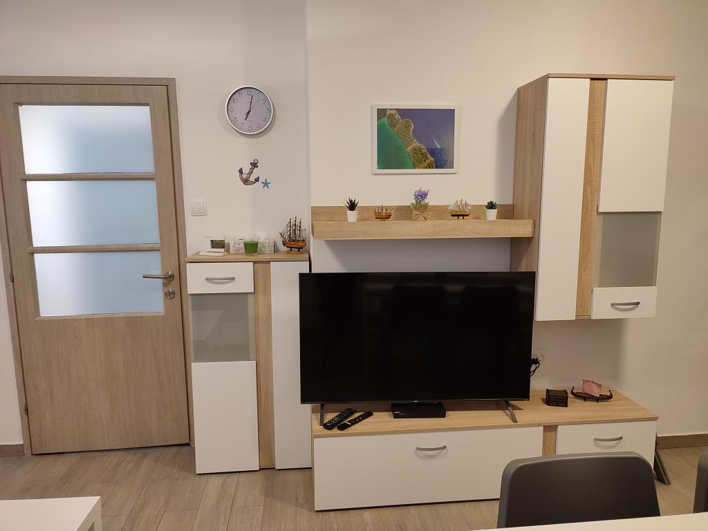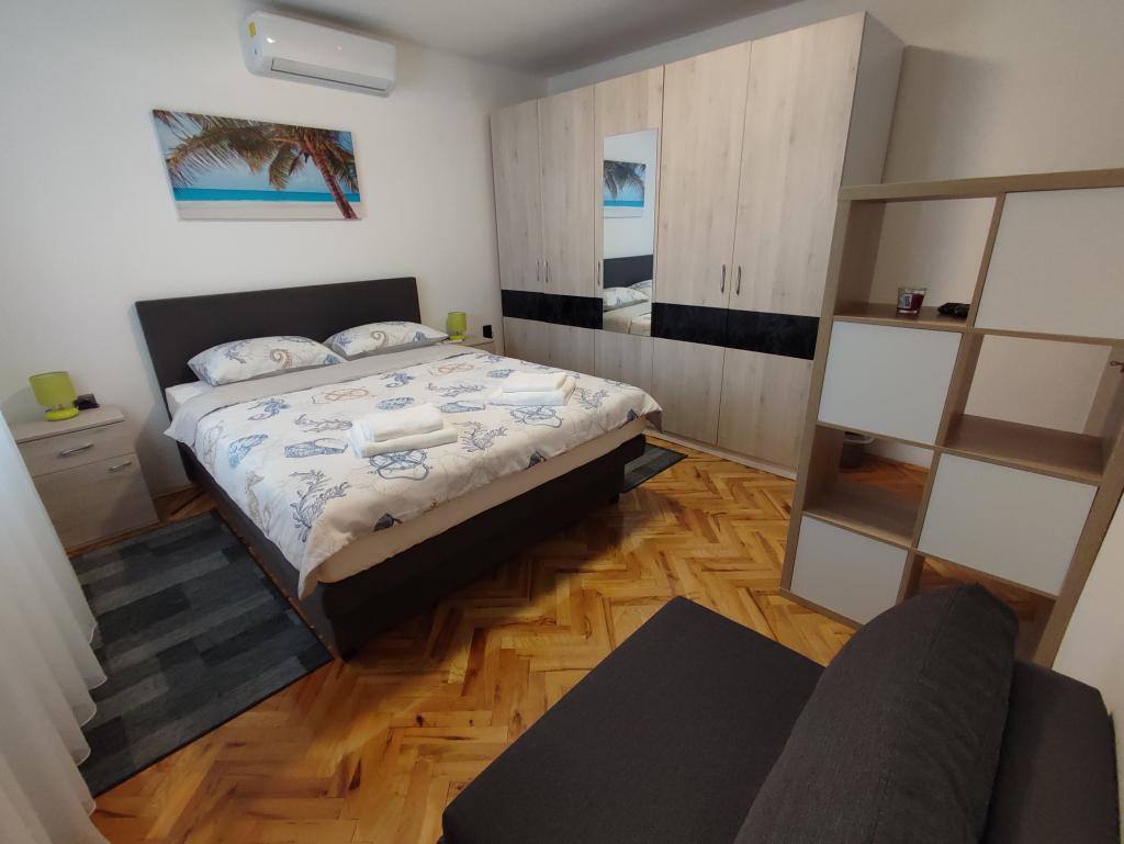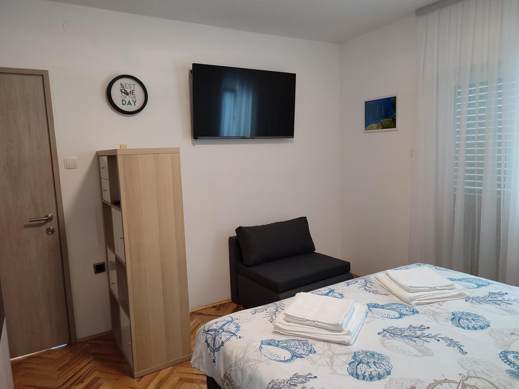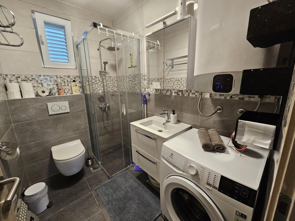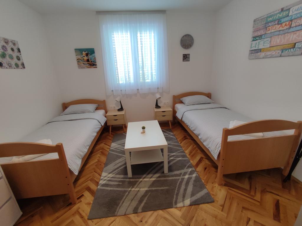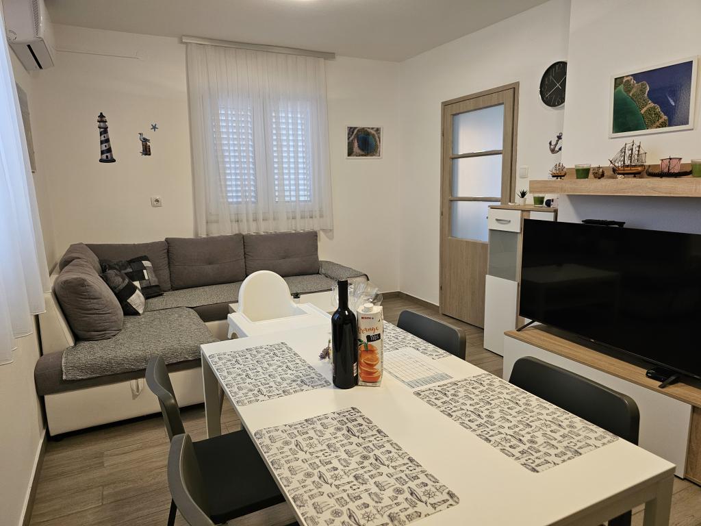 Frissen felújított, modern apartman két hálószobával. Teljes fürdőszoba zuhanyzóval és mosógéppel. Teljesen felszerelt konyha (indukciós főzőlap, sütő, mosogatógép, mikrohullámú sütő, kávéfőző, kenyérpirító). Ingyenes wi-fi, okos android TV. Nagy terasz napellenzővel. Ingyenesen használható bekerített és parkosított udvar napelemes zuhanyzóval. Grillezési lehetőség. Parkolás az udvarban biztosított, elektromos járművek töltésének lehetőségével, előzetes bejelentkezés alapján. Közel a strandhoz. Gyönyörű, több kilométer hosszú sétány a strand mentén, amely Vrsi-Mulo és Zukve településeket köti össze. A sétányon éttermek és bárok találhatók.