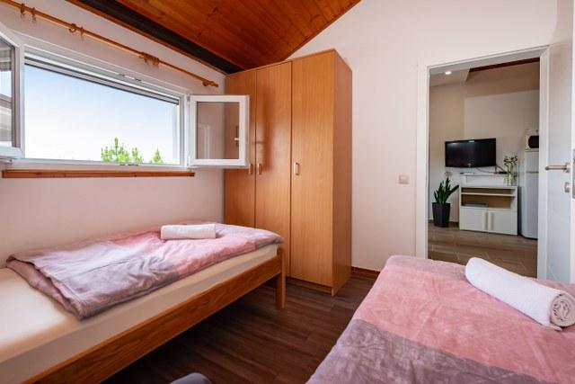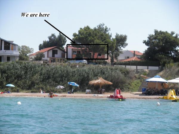 Apartman A7 2 10 méterre a homokos strandtól, lakások A4 2 (a) és A4 2 (b) helyezkednek 15-20 méterre a homokos strandtól és a lakás A6 található 35-40 méterre a homokos plaže.Klima (5 euro / éjszaka ) és az idegenforgalmi adót (1 EUR / éj felnőtteknek, 0,5 Eur / éj Gyermek 12-18 éves korig, és a 12 év alatti gyermekek nem fizetnek tartózkodási illeték) nem tartalmazza az ár, és külön díj ellenében.