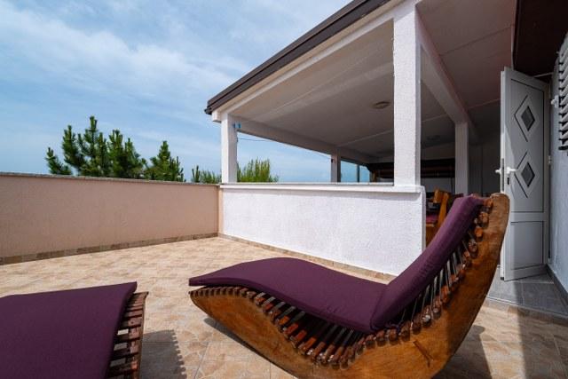 Szép apartman nagyszerű terasszal, kilátással a tengerre. A tengertől való távolság kétségtelenül előnyt jelent (az úton és egyenesen a strandig). A teraszon nyugágyak, hinta, naplemente nézhető. Szoba nagy hűtőszekrénnyel, légkondicionálóval és mosogatógéppel.