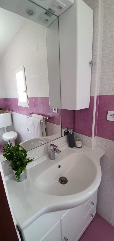 Nagyon jó szállás. A tulajdonosok is nagyobb egy hálószobás apartman 3mi / celkemn 7 ágy /, kilátással a tengerre és egy nagy fedett terasz az 1. emeleten / földszint élnek. Így éltünk. Ezek nagyon hasznos. A strand az úton, találkoznak vele a lépcsőn. Ez az élelmiszer-és 3 vízibicikli bérlés. Ennek előnye az is része a természetes árnyékot. A homokos, jó kis gyermekek, de a jó tengeri árvíz és a felnőttek. Persze, ez vonzza a gyermekes családok, akkor lehet számítani. A Nina, ami kb 1km, a chodilko normális út, ez volt talán az egyetlen hátránya.