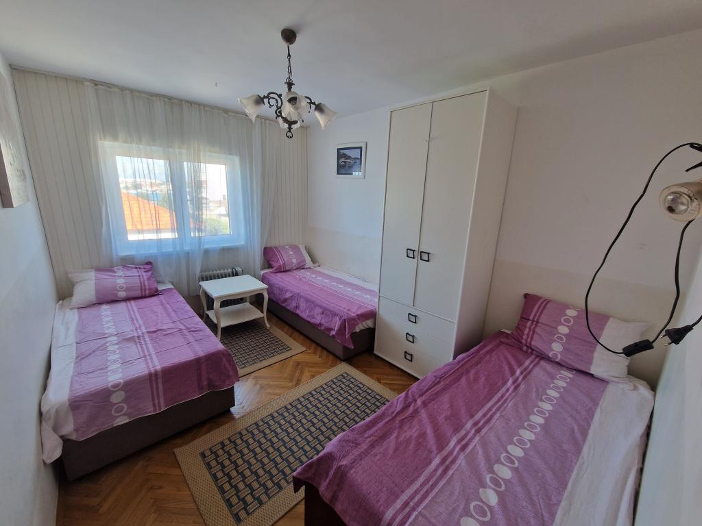 Az Apartments Mikica Zukve falujában található, az első sorban a tenger felé, 3 km-re Nin városától és 15 km-re Zadartól. A házban két apartman található. A nagyobbik az első emeleten található, két hálószoba három-három ággyal, nappali három ülőhellyel, konyha, WC zuhanyzóval, műholdas TV, légkondi, tengerre néző kilátással és két összefüggő terasszal, 17 és 8 fős. m2, az egyik napozóágyakkal és napernyővel van lefedve. A kisebbik apartman a földszinten található nappali-hálószobával, zuhanyzós fürdőszobával, étkezős konyhával, valamint fedett és kerti terasszal, ahonnan közvetlen kilátás nyílik a Nin-öbölre. Az apartmanok teljesen felszereltek és ágyneművel felszereltek. A kertben grillező, zuhanyzó és napozóágyak találhatók. A kert közvetlenül a tengerparti sétányhoz és a strandhoz vezet. 50 m-re az egyik oldalon kavicsos strand, a másik oldalon egy gyönyörű teljesen homokos strand található. A ház el van választva a többitől. Közvetlen hozzáféréssel rendelkezik a tengerhez, és Covid-mentes. A védőoltások tulajdonosai 2 alkalommal.