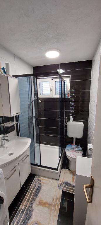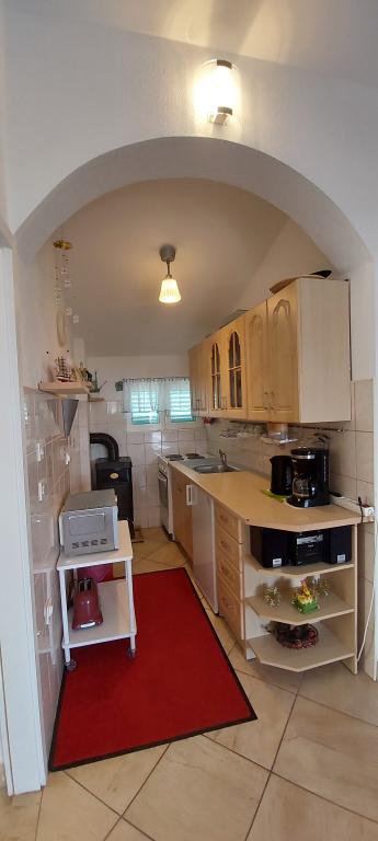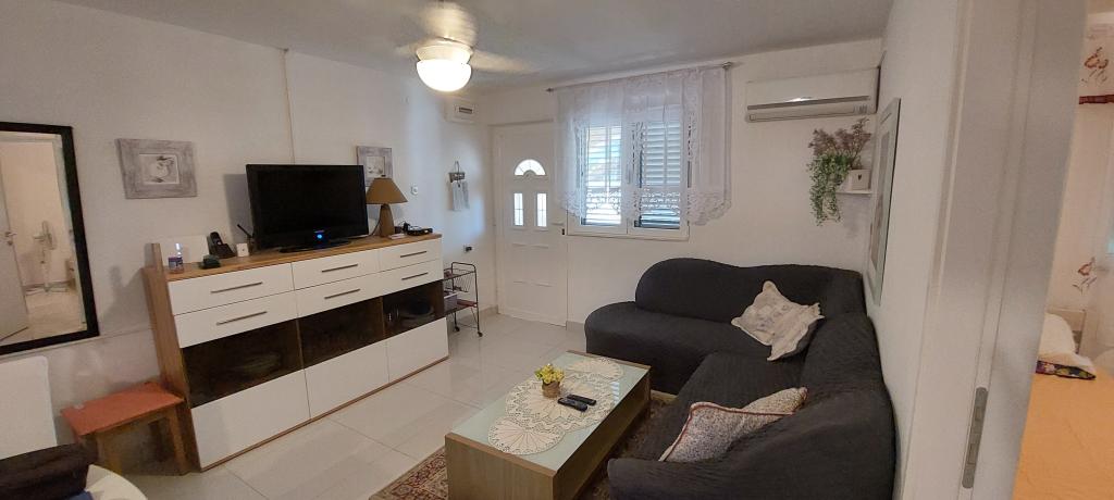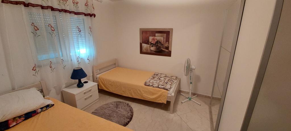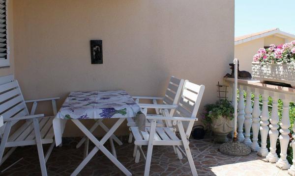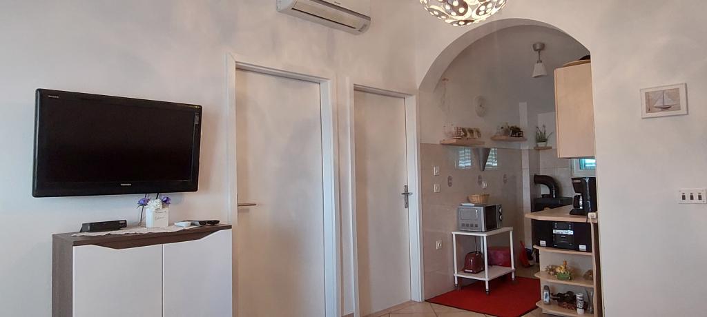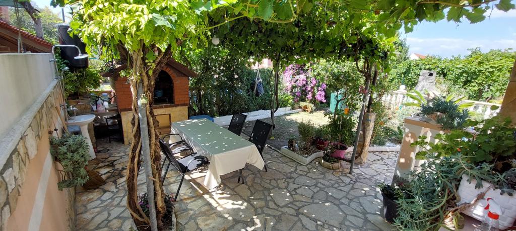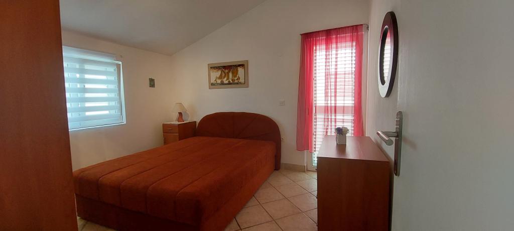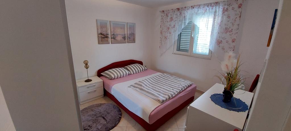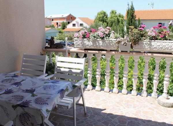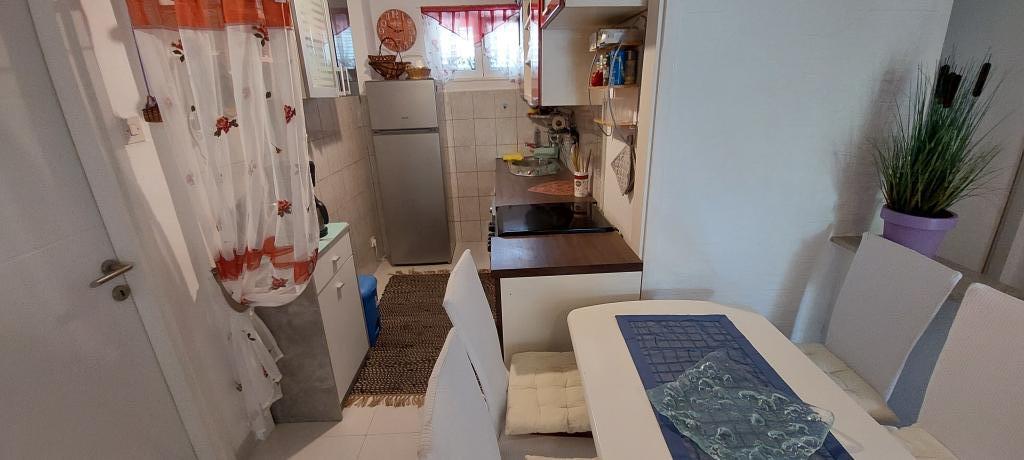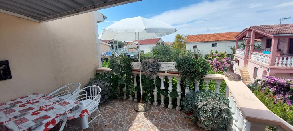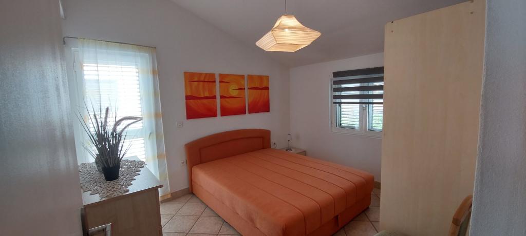 A lakás teljesen bútorozott. Két nagy hálószoba, egy fürdőszoba, egy konyha kapcsolódik egy nagy nappali, terasz, kilátással a tengerre, a légkondicionáló, Internet (Wi-Fi). A parkolás az udvarban. Van egy grill, így van egy barbecue minden nap. Vásároljon az utcánkban, a ház mellett. A strand közel, 2-3 perc séta. A strandon nádfedeles napernyők és napozóágyak, hogy lehet bérelni naponta. Távolság a város Nina szükséges 3 perc a város Zadar 15 perc autóval. Teljesen berendezett apartman található, egy csendes falu Vrsi-Zukve.