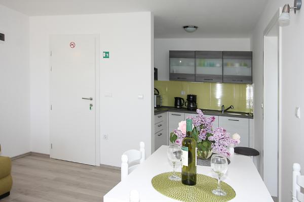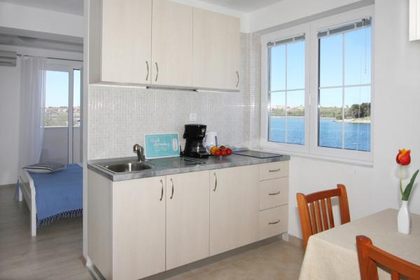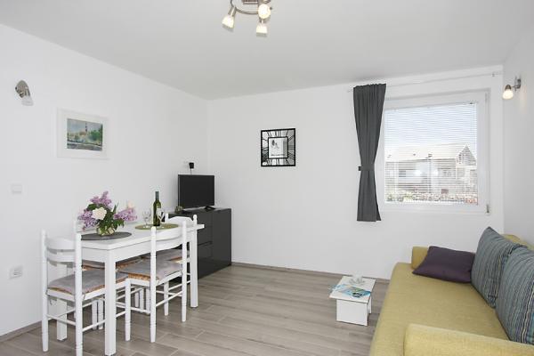 Az apartmanok Nin város óvárosában, egy szigeten, a tengertől 10 m-re, a városközpont és Ždrijac homokos strandja közelében találhatók, mely sekélysége miatt ideális kisgyermekes családok számára. kite-szörf iskolájáról is ismert. Egy másik homokos strand, a Kraljičina plaža, 2 km-re található, ha közúton megy, és gyógyiszapjáról ismert. Minden apartman frissen felújított, modern és jól felszerelt. Az 1-es stúdióból csodálatos kilátás nyílik a tengerre, ideális párok számára. Stúdió 2 és 3 szobás. lenyűgöző kilátással a homokos strandokra és a Velebit-hegyre. Legfeljebb 3 felnőtt vagy 2 felnőtt + 1 gyermek elszállásolására alkalmas. Szoba franciaággyal és 120×200 méretű kanapéval. A 3-as és a 4-es apartman nagyobb, maximum 4 fő elszállásolására alkalmas, egy franciaággyal felszerelt külön szobából és egy 160x200-as kanapés nappaliból áll. App. A 4-ben két loggia is található, kilátással a kertre és a tengerre. Minden apartmanhoz jól felszerelt konyha és fürdőszoba, valamint közös mosókonyha tartozik. Az ágyneműt és a törölközőket rendszeresen cserélik