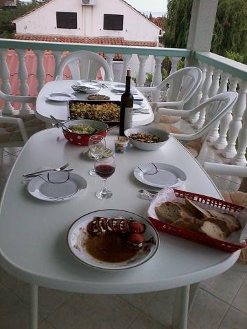 Egy családi ház is kiadó lakások, amelyek teljesen berendezett, csendes falu közelében Nin. A házban található, 100 méterre a tengerparttól és 300 méterre az étteremtől. Ahhoz kell egy pár perc séta. A lakás teljesen bútorozott. Nekik van egy hálószoba, gyerekszoba (ágy lehet csatlakozott), fürdőszoba, konyha, terasz, kilátással a tengerre, a légkondicionáló, Internet (Wi-Fi). Parkolóhelyek állnak az udvaron. Van egy grill, így van egy barbecue minden nap :) n a mi utcánkban, szerte a házban.