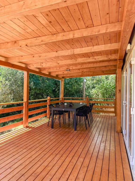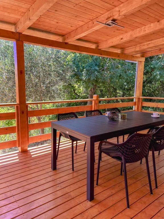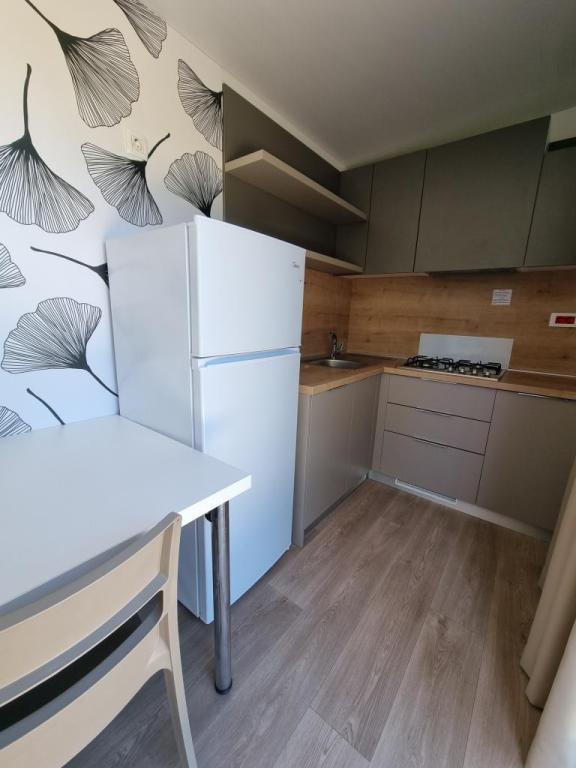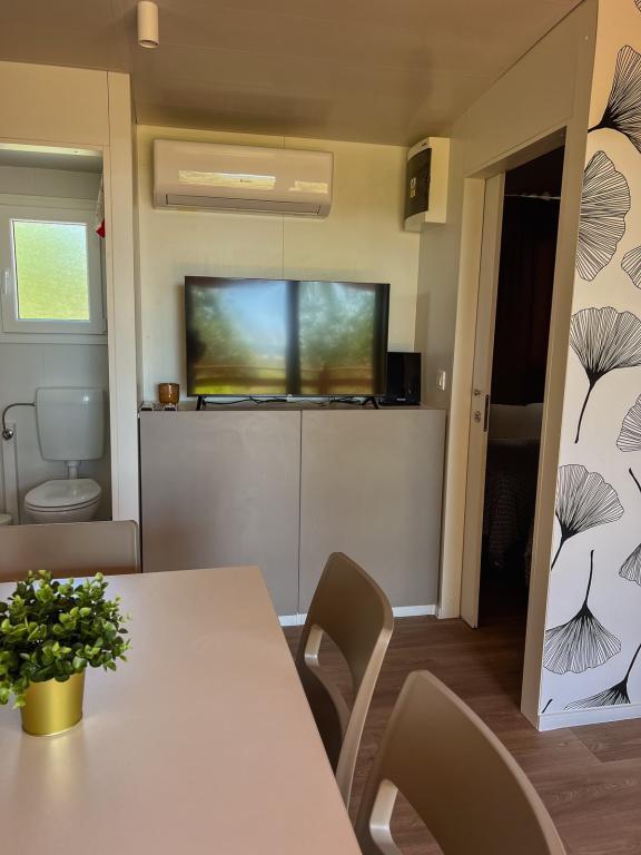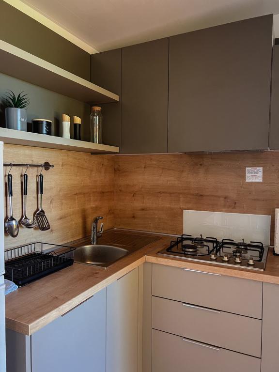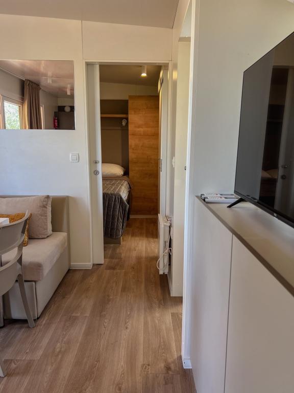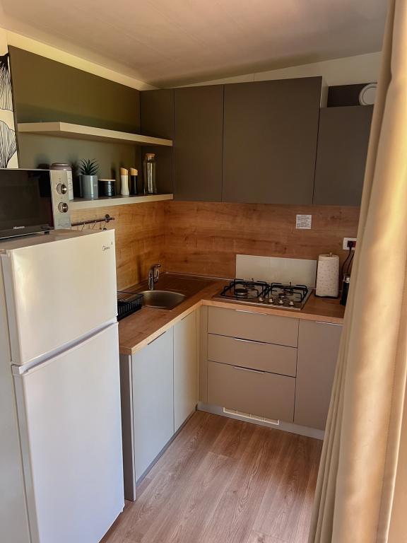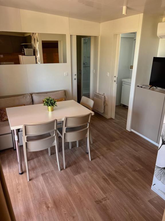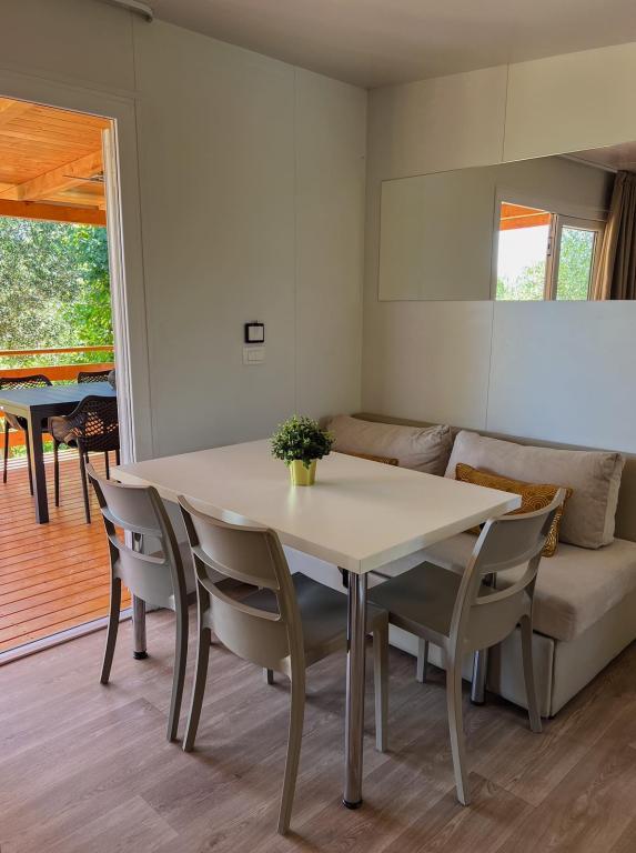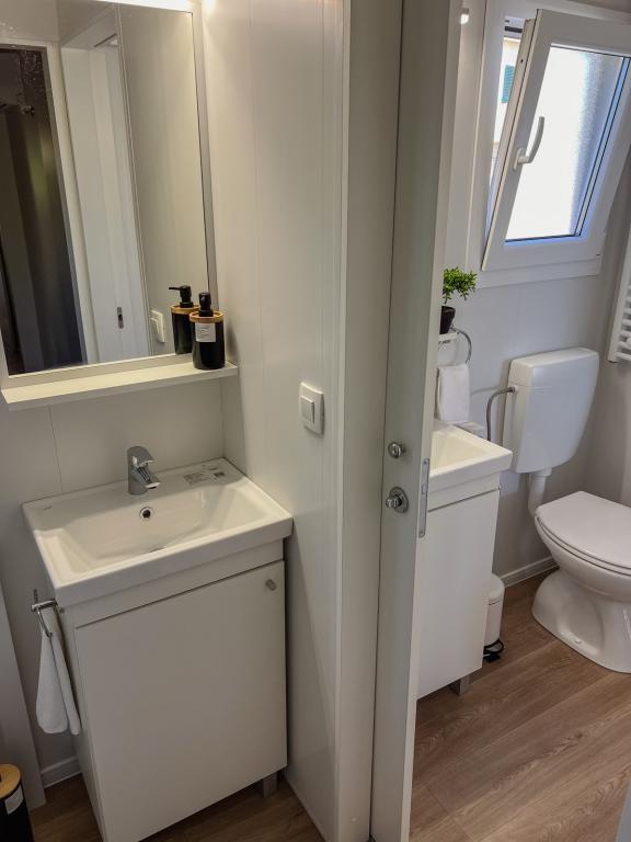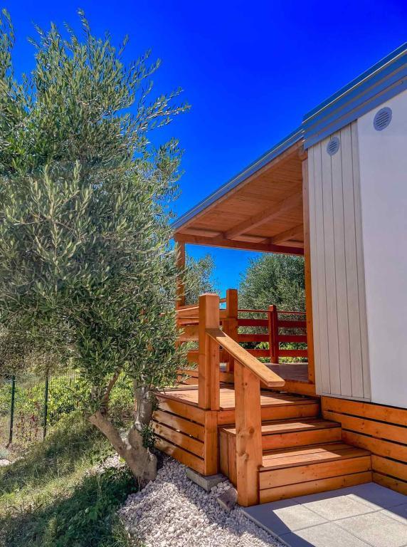 A Nin kemping bejáratánál modern berendezésű mobilházak találhatók. A teraszról kilátás nyílik a tengerre és Nin óvárosára. A létesítmények 5 perc sétára találhatók a Kraljičina strandtól és 10 perc sétára a központtól és minden szükséges szolgáltatástól. A házak csendes és pihentető környezetben, olajfákkal körülvéve találhatók.