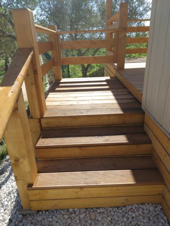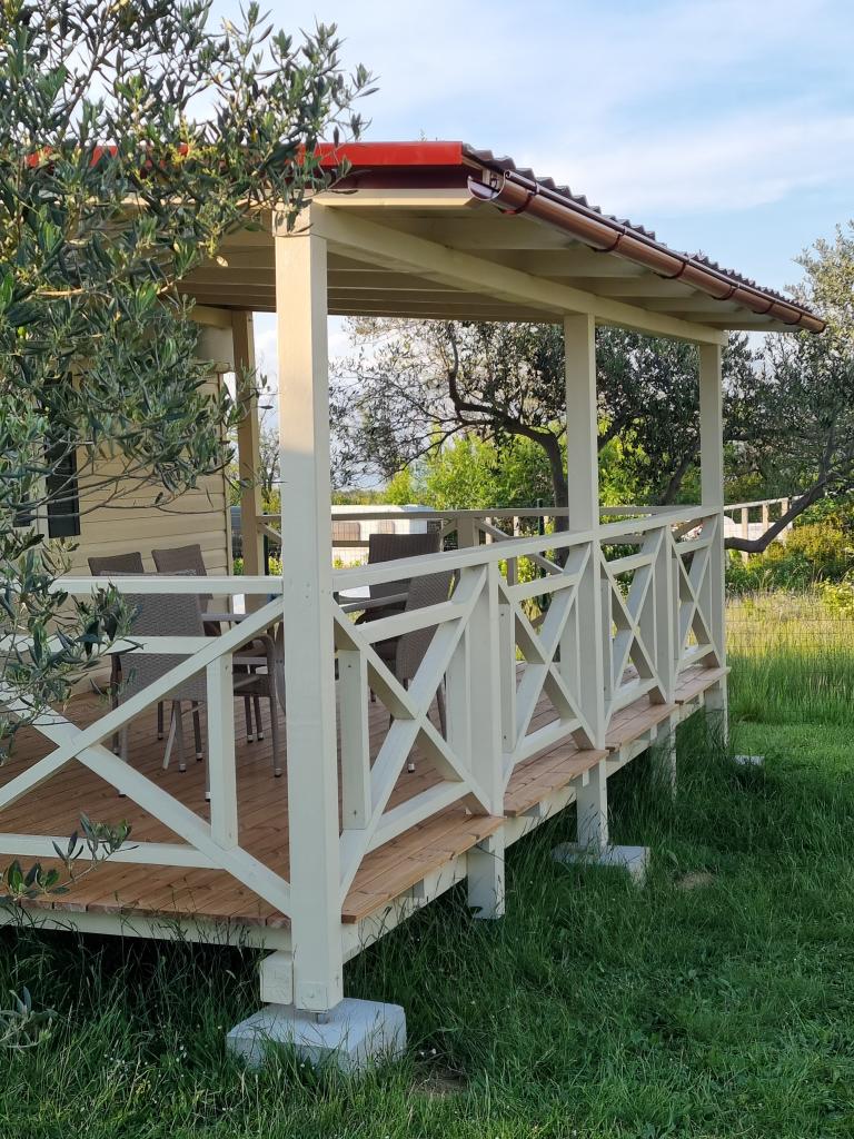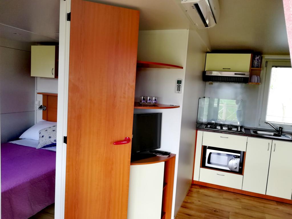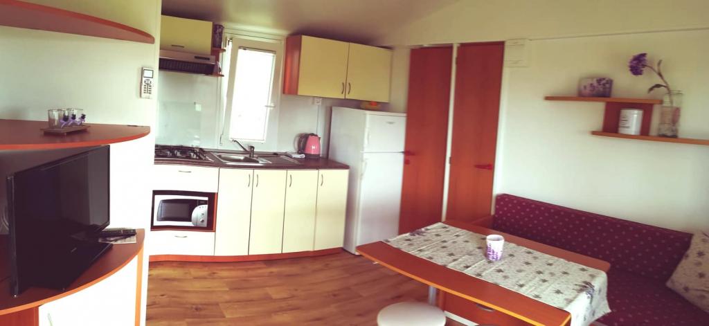 A Camping Nin bejáratánál modern berendezésű mobilházak találhatók. A teraszról a tengerre és Nin óvárosára nyílik kilátás. A létesítmények 5 perces sétára találhatók a Queen's Beachtől és 10 perces sétára a központtól és minden szükséges kényelmi szolgáltatástól. A házak békés és pihentető környezetben találhatók olajfákkal körülvéve.