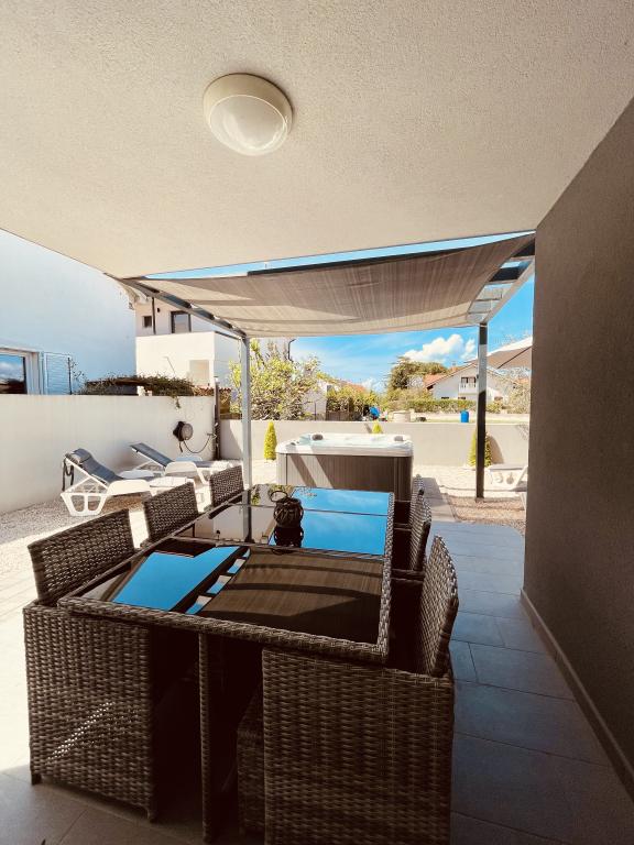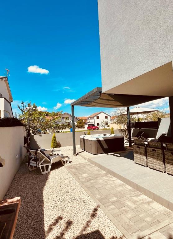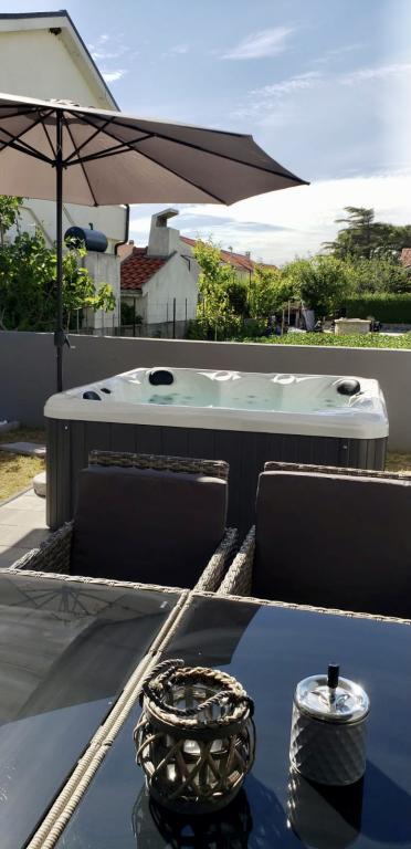 Üdvözöljük az LP Apartment Croatia-ban! Vrsi / Zukve településen bérelünk egy ikerházat maximum 8 fő részére, nagy pezsgőfürdővel. A ház mindössze 150 m-re van a tengertől.