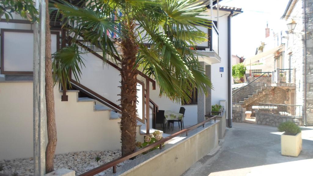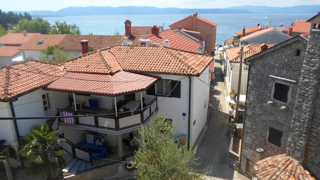 Teljesen felújított A4+1 apartman Njivice központjában, 50 méterre a fő strandtól. Szupermarket, posta és gyógyszertár a közelben. Árnyékos terasz, parkolás közvetlenül az épület mellett. Gazdagon felszerelt apartman felár nélkül. Az apartman mozgáskorlátozottak számára is alkalmas - nincs lépcső, a földszinten található.