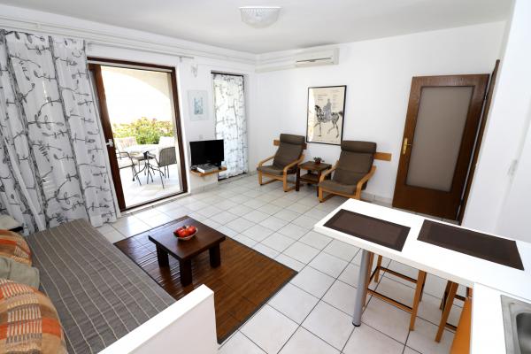 Teljesen berendezett és felszerelt apartmanok nagy terasszal egy njivicei családi ház földszintjén. Az épület csendes helyen, a központban található, második sorban a tenger és a kikötő, parkoló az épület előtt, a tengertől és minden létesítménytől való távolság 50-100 m.