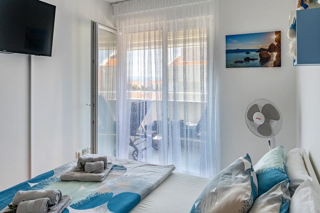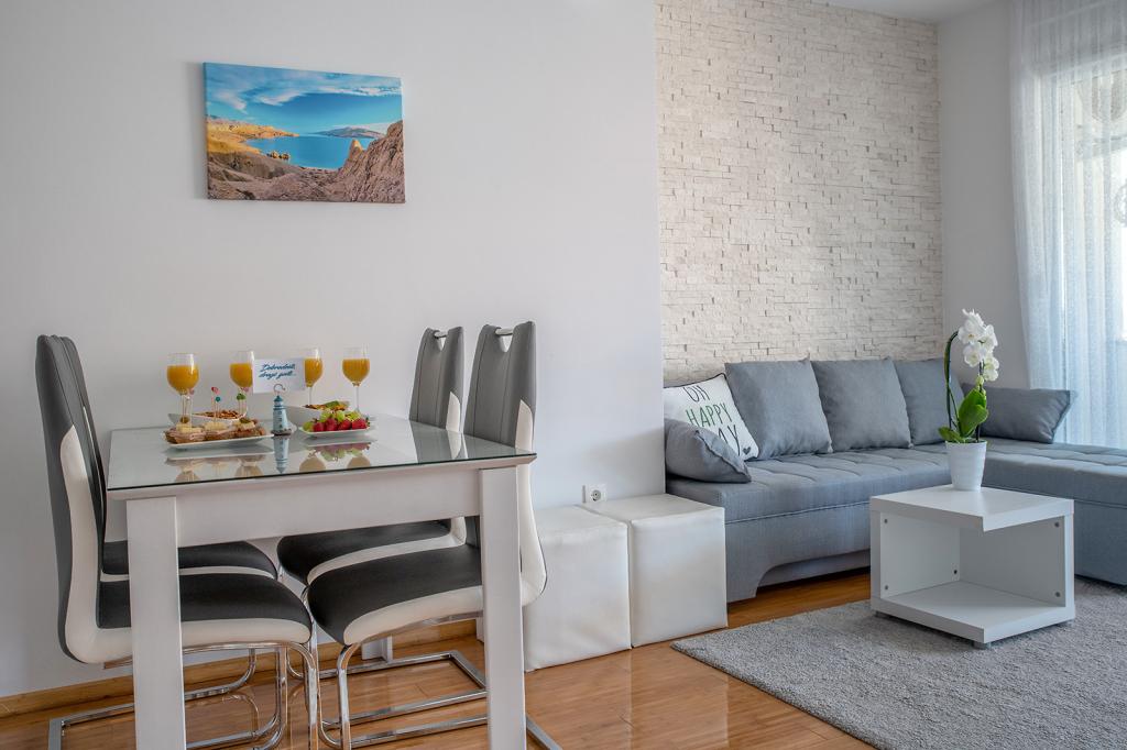 Nagyszerű helyen vagyunk Novaljában, a Primorska utcában, 150 méterre a kristálytiszta tengerű homokos strandtól, 15 percnyi könnyű séta a tengerparton a sétányon, Novalja/riva központjába, ahol számos bár és játszótér található a gyermekek számára. 150 m-re Ploče homokos strandjától, 8 perc sétára Babe strandjától. Mindkét strand alkalmas a gyermekek számára. A sziget többi gyönyörű strandja csak néhány percnyi autóútra található. Az apartmanban 2 hálószoba, konyha étkezővel és nappalival, fürdőszoba, előszoba, tengerre néző nagy terasz és parkolóhely található. Mindhárom szobából ki lehet jutni a teraszra. Teljesen felszerelt a kényelmes tartózkodás érdekében: 2 légkondicionáló, wi-fi, üvegkerámia főzőlap, sütő, hűtőszekrény fagyasztóval, mikrohullámú sütő, mosogatógép, mosógép, 2 TV, ágynemű, törölközők, konyharuhák, vízforraló, elektromos grill, kenyérpirító , hajszárító, 2 kényelmes nyugágy a teraszon, napernyő... Az apartman kisállat elhelyezésére nem alkalmas. Üdvözöljük!