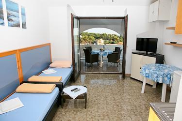 Apartmanok a tengerparton, a tenger mellett, teljesen berendezett, csónakkikötő, 10 percre a városközponttól a Novalja.