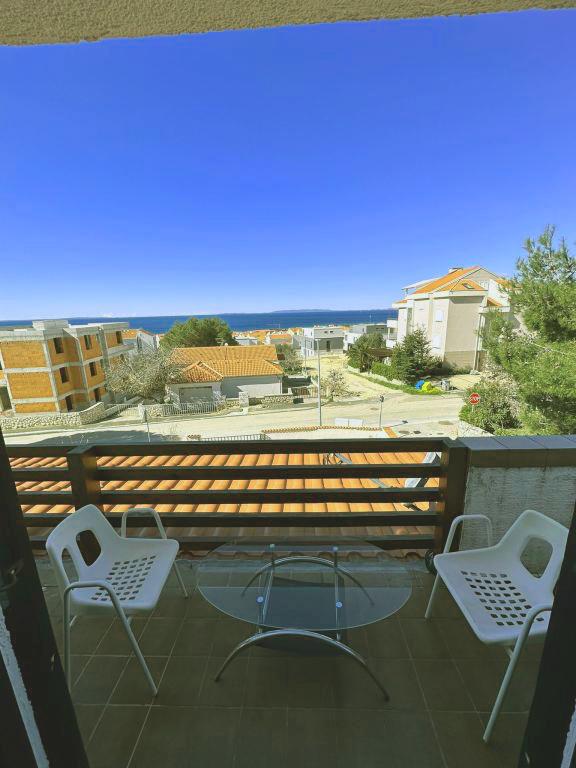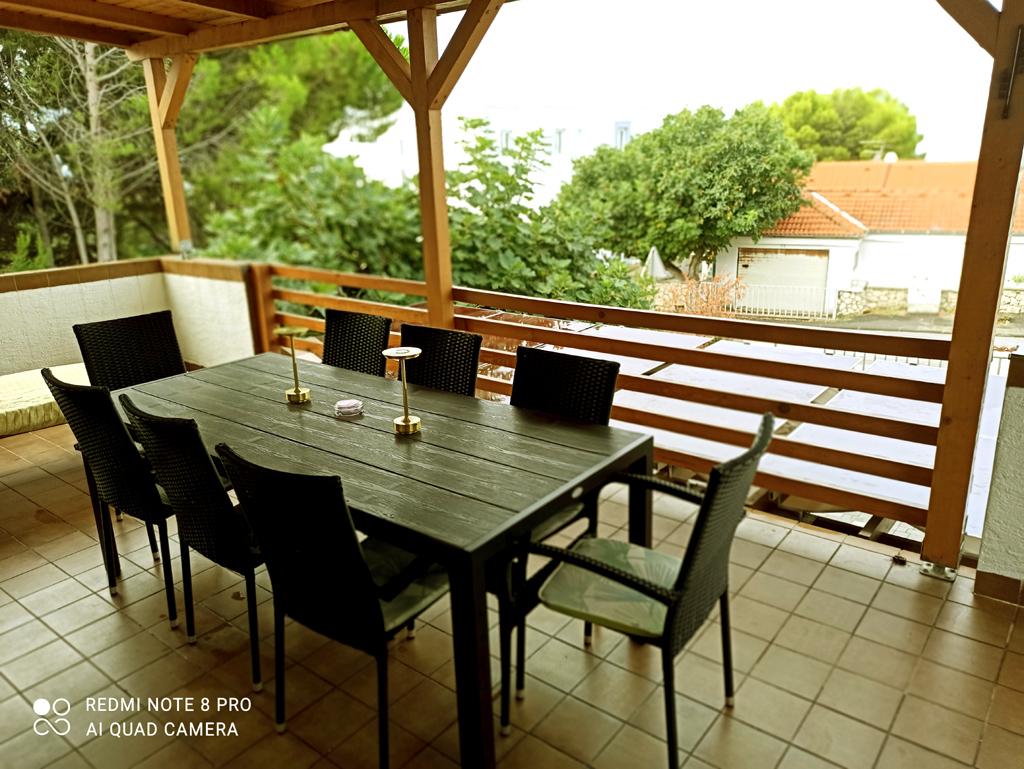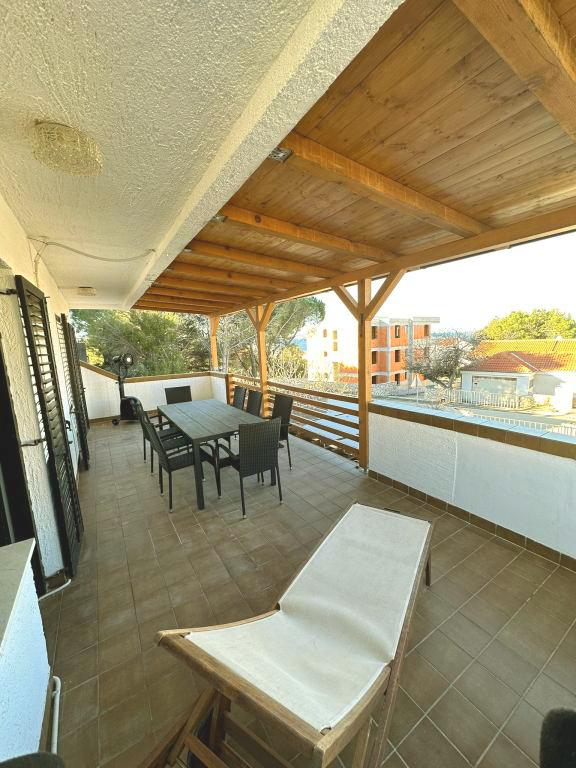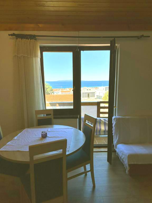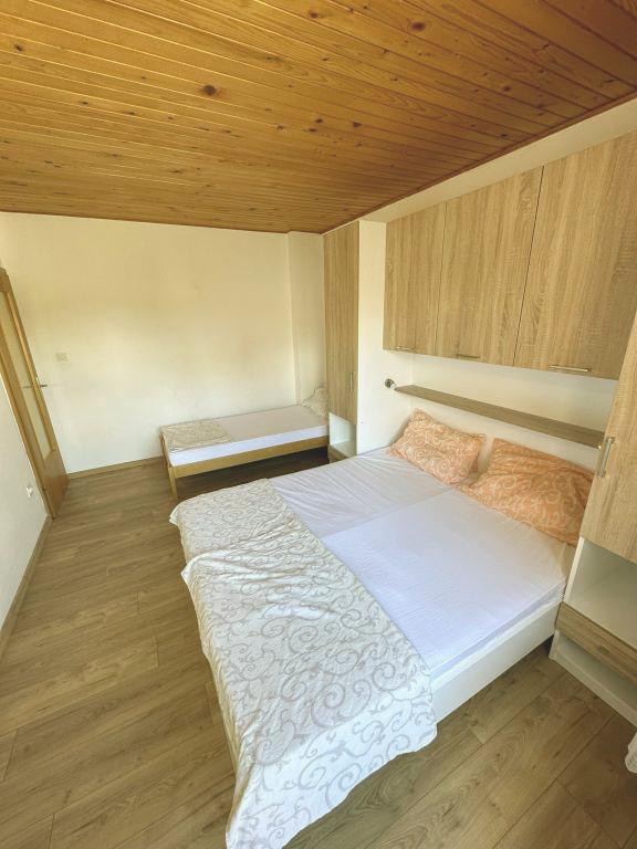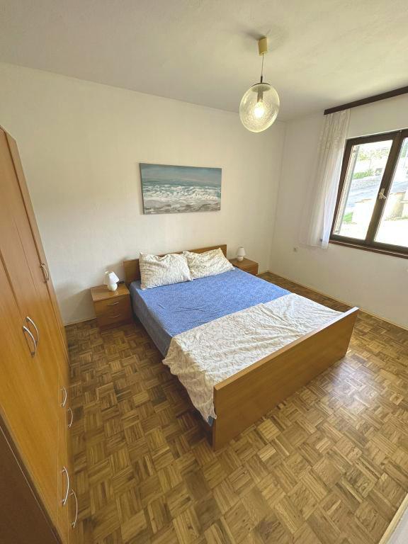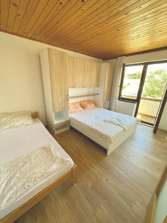 Igényesen felszerelt apartman három hálószobával és egy pótággyal a nappaliban. Mindhárom hálószobában egy franciaágy és egy gardrób található a ruhák tárolására. A konyhával összekötött nagy nappali. Az apartmanhoz nagy terasz tartozik, kilátással a tengerre. A lakáshoz grillezési lehetőség is van. Az udvarban és a lakás közvetlen közelében parkolóhely biztosított a vendégek számára.