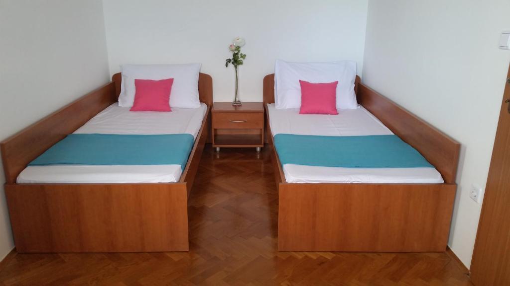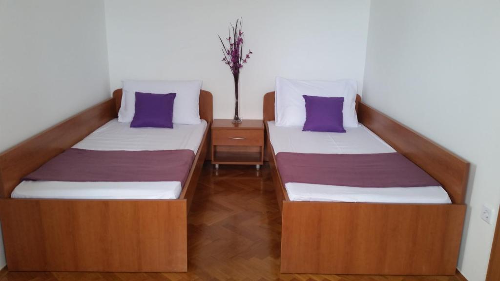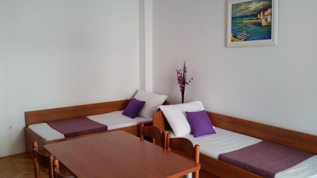 Kedves Vendégeink, üdvözöljük az oldalon, ahol bemutatjuk szálláskínálatunkat és Novalja város kínálatát. Kínálunk 5 apartmant és 3 stúdió apartmant. Mindegyik komplett konyhai eszközökkel, törölközővel és ágyneművel felszerelt, illetve egyeztetés szerint grillező is rendelkezésre áll. A ház 5 perces sétára található a központtól és a strandtól. Az épület közelében üzletek és éttermek találhatók, az apartmanok pedig 500 m-re találhatók Novalja központjától. Minden apartmanban van műholdas TV és légkondicionáló. Novalja - Pag sziget turisztikai központja, amely számos turista híres nyári üdülőhelye és célpontja, lehetőséget kínál az aktív és tartalmas nyaralásra. Novalja természeti szépsége legszembetűnőbb a gyönyörű strandokon – Zrće, Caska, Straško, Babe, Trinćel, Braničevica és Vrtić. - Gyermekek kedvezményt kapnak a szállás árából. - Gyermekek 12 éves korig = 0,00 € pótágyon. Pótágyakat csak gyermekek számára regisztrálnak.