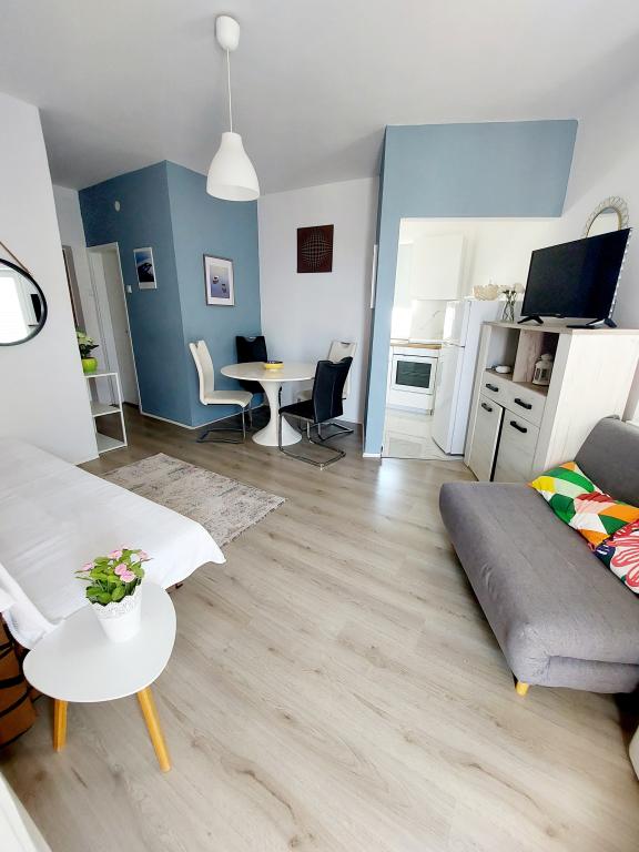 Egy hétig maradtunk a lakásban. Nagyon kedves házigazda, mindig elérhető. A lakás tágas, szépen berendezett, jól felszerelt, tiszta, és minden benne van, ami ahhoz kell, hogy jól érezze magát. A strand és a sétány nagyon közel van, a központ gyalog kb. A közelben számos kávézó és étterem található. Minden ajánlás