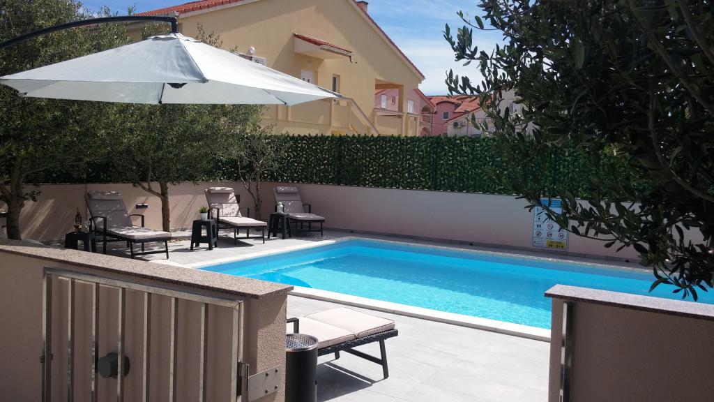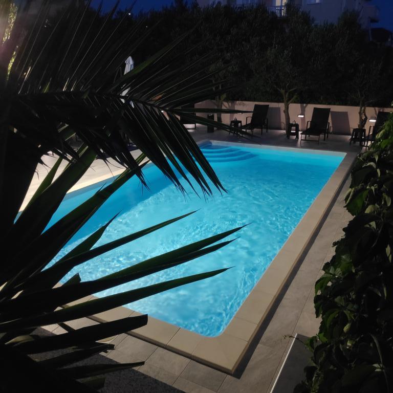 A Villa Petra & Sanja (Villa medencével) NOVALJA-ban található, PAGU gyönyörű szigetén, egy kert közepén, olajfákkal és pálmafákkal körülvéve. A vendégek igénybe vehetik a szabadtéri medencét, a grillezőt, az ingyenes Wi-Fi-t, a parkolót, a kényelmes és modern berendezésű szobákat. Minden légkondicionált apartman ülősarokkal ellátott erkéllyel, teljesen felszerelt konyhával és fürdőszobával rendelkezik. Minden apartman mikrohullámú sütővel, mosogatógéppel és mosógéppel felszerelt. 6 db egy vagy két hálószobás apartman foglalható. Mindössze tíz perc sétára a homokos strandtól és a tengerparti sétánytól, amely Novalja központjába vezet. Más gyönyörű homokos, kavicsos és sziklás strandok a legszebbek az Adrián, és csak néhány percnyi autóútra vannak. A taxiállomás 10 méterre található az épülettől. A híres ZRĆE strand a közelben található.
