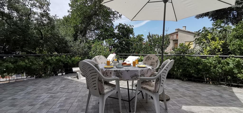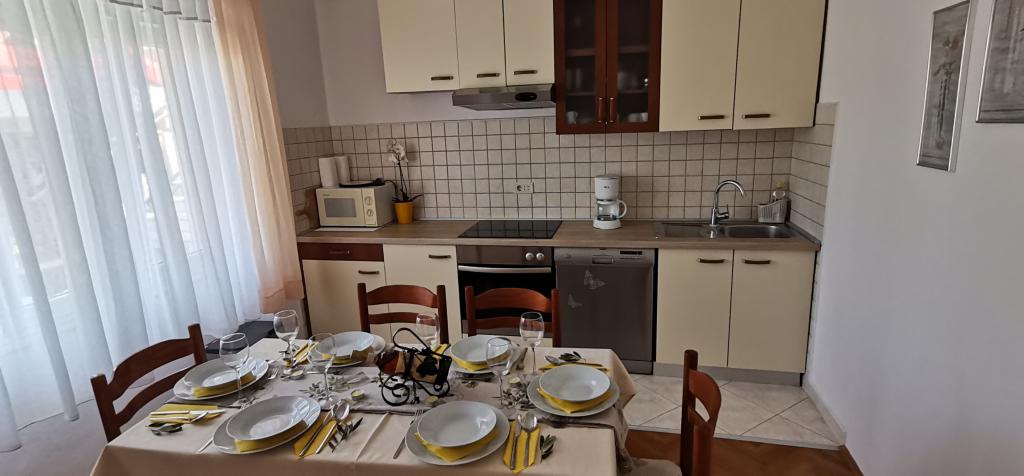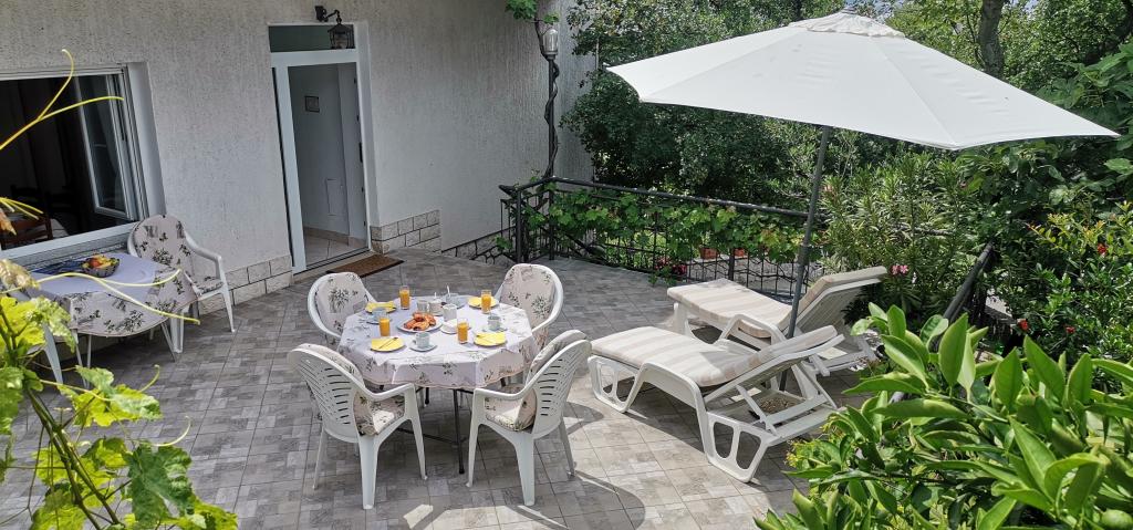 Teljesen és korszerűen felszerelt apartman Novi Vinodolski csendes részén, 5 perc sétára a városközponttól és 5 perc sétára a fő strandtól. Ház kerttel, kerttel, nagy terasszal és két nagy tengerre néző erkéllyel. A lakáshoz két ingyenes parkolóhely tartozik. Az apartman udvarán grillező áll a vendégek rendelkezésére. A légkondicionált szobákban műholdas TV található.