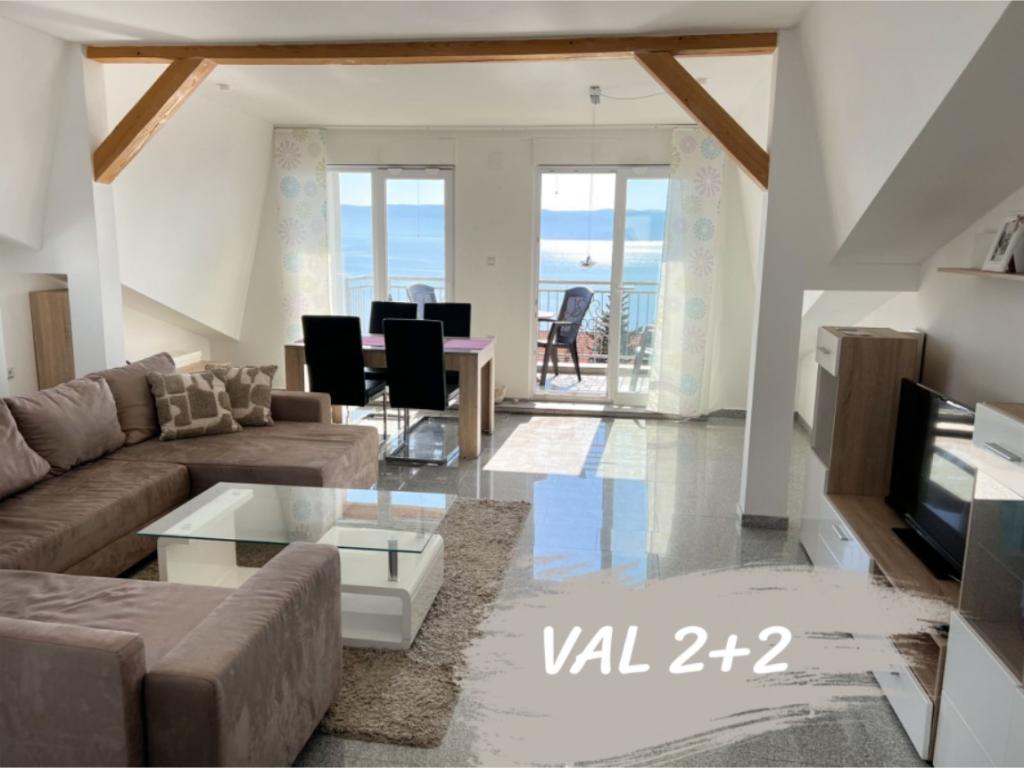 A VAL 2+2 apartman egy családi ház tetőterében található. Panorámás kilátás nyílik a tengerre és Krk-szigetre. A strand 300 méterre található. Parkolás a ház előtt, az udvaron kívül biztosított. Háziállatokat szívesen látunk, a tartózkodásuk ingyenes.