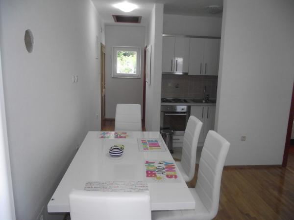 Újonnan felújított házat kínálunk három légkondicionált apartmannal. A földszinten található egy két hálószobás apartman, mely maximum 6 fő elszállásolására alkalmas. Az emeleten két egy hálószobás apartman található, amelyek mindegyike 4 fő elszállásolására alkalmas. Az udvaron kiülni és társasozni, grillezni. A ház Novi Vinodolski bejáratánál található Fiume irányából, és nagyon közel van a Novi Resort apartmankomplexumhoz. 200 méterre van a tengertől és 200 méterre az első bolttól.