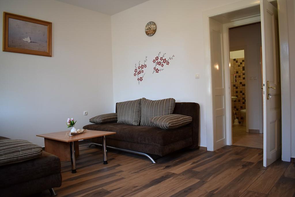 A2+2-ben voltunk és nagyon elégedettek vagyunk. Žana asszony kellemes, befogadó és segítőkész. Szívesen beszélget a vendégeivel, és igazán jól érzi magát. Minden megvan, amire szüksége van a lakásban. Az apartmanhoz nagy terasz tartozik, ahol kávézhat vagy grillezhet. Az apartman elhelyezkedése kiváló. Az utca túloldalán pékség és bolt található, a strand és a központ is pár perc sétára található. A nagyobb üzletek kedvelőinek Lidl is van az apartmantól 500 méterre. Nagy plusz a nagy parkoló is. Összességében, ha ezeket az apartmanokat választja, nem fog rosszul járni