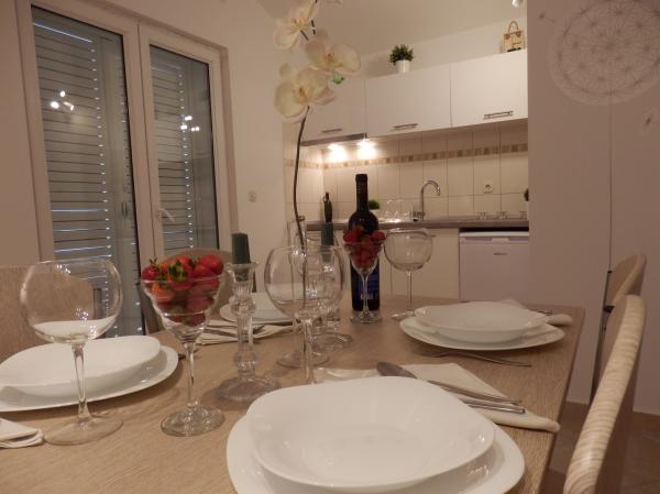Hangulatos és teljesen felszerelt apartman Novigrad kis, festői városának csendes részén, Zadar közelében. A 90 m2-es apartman az 1. emeleten található, 2 erkéllyel, gyönyörű kilátással a tengerre. Az udvar kb. 200 m2, 3 parkolóhellyel. Van 3 hálószoba, 2 fürdőszoba és egy konyha étkezővel. Az udvaron grillezési lehetőség található.