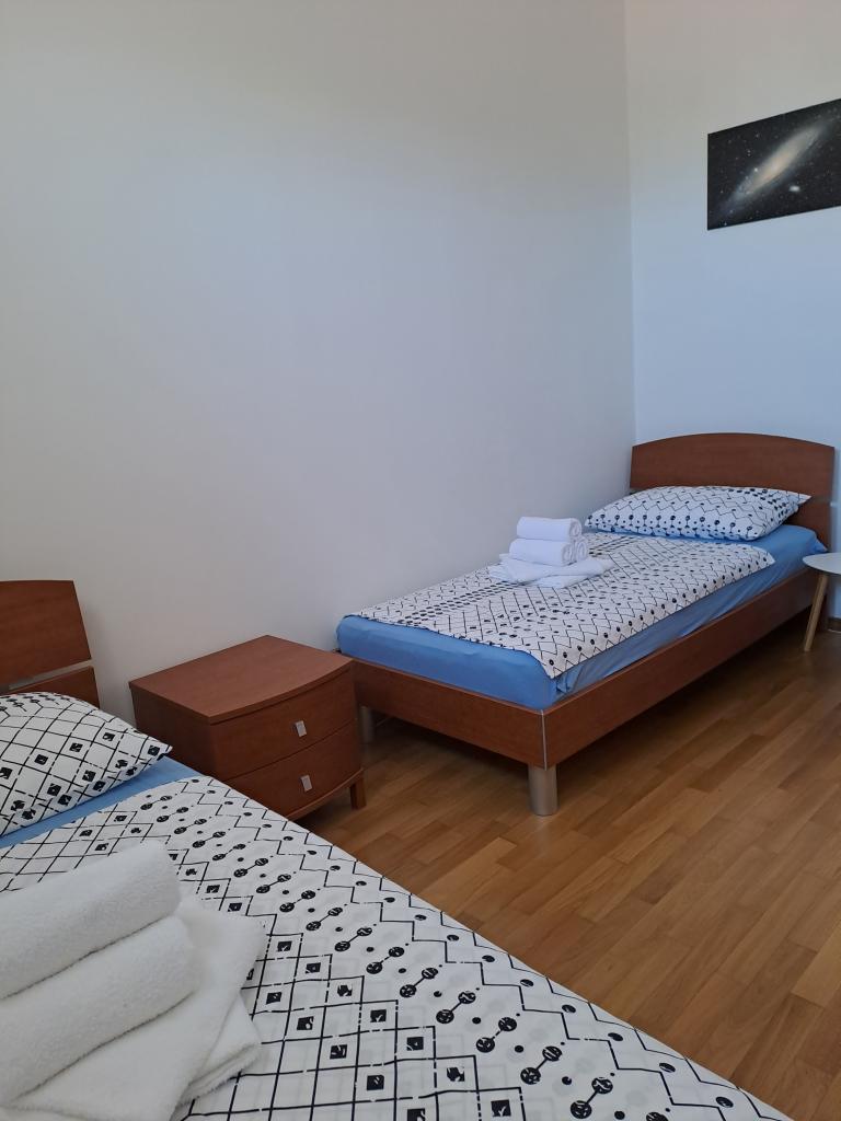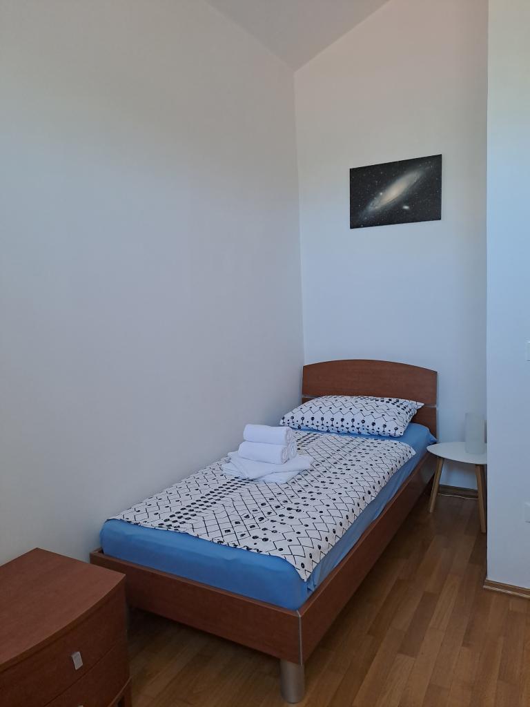 Az Apartment Nina Novigrad városának egy csendes részén található, a Šaini kerületben, egy szelíd dombon, ahonnan gyönyörű kilátás nyílik a városra és a tengerre. A lakás az épület második emeletén található, előszoba, konyha étkezővel, nappali, két hálószoba és egy fürdőszoba. A konyhában háztartási gépek és segédeszközök találhatók a legigényesebbek számára is. A légkondicionált nappali okostévével és WiFi-vel szolgálja a kikapcsolódást. A nagy hálószobában egy franciaágy, a kis szobában két ágy található. A második klíma a két szoba között található. Az apartman legszebb része a terasz, ahol a reggeli kávét a tengerre és a falura, vagy az esti naplementére nézheti. Használhatja a grillezőt, amely az udvaron található. Az apartman mellett az uszoda használatát is biztosítjuk. Itt-tartózkodását számos sport-, kulturális, társadalmi és gasztronómiai eseménnyel egészítheti ki, amelyek Novigradban és környékén számosak. Novigrad kiváló közlekedési kapcsolatokkal rendelkezik egész Isztria területével.