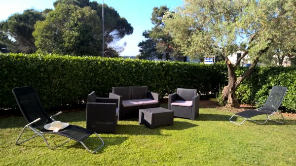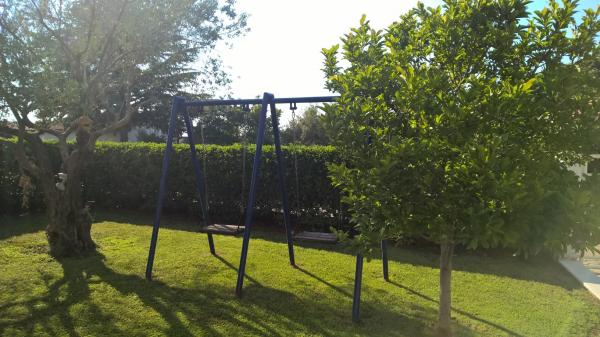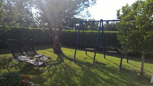 Lakás külön bejárattal. Teljesen felszerelt. Fehérnemű, légkondicionáló, műholdas TV-vel, Wi-Fi, parkoló használata, grill és kerti zuhany. A parkkal körülvett. Hinta gyerekeknek és nyugágyakkal. Mi található mintegy 100 m-re a tengertől, a parton sétálhat.
