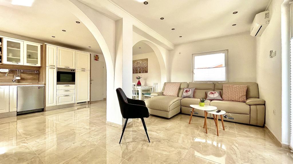 4 lakás kiadó Novigrad közelében. Távolság a strandtól és a központtól 1800 m. Az apartmanok újszerűek, szőlőültetvényekkel és természettel körülvéve. A ház előtt medence található. Wi-Fi, légkondicionáló, SAT TV. 2 km-re található Horvátország legnagyobb vízi parkja, az Istralandia. Ideális gyerekeknek és lelkes fiataloknak.