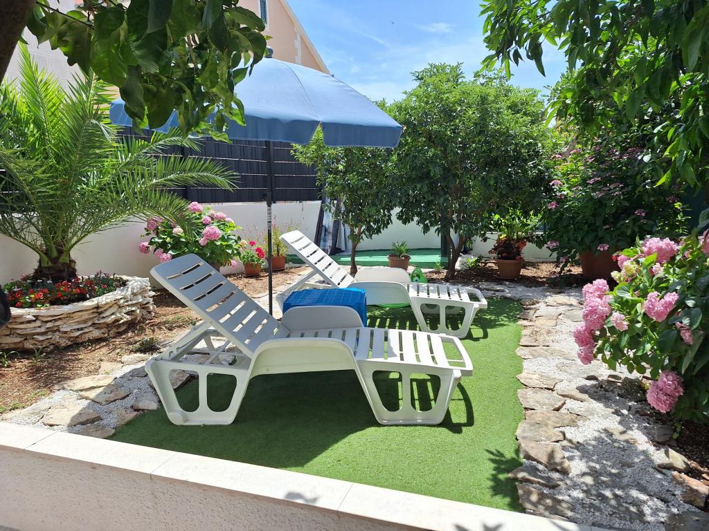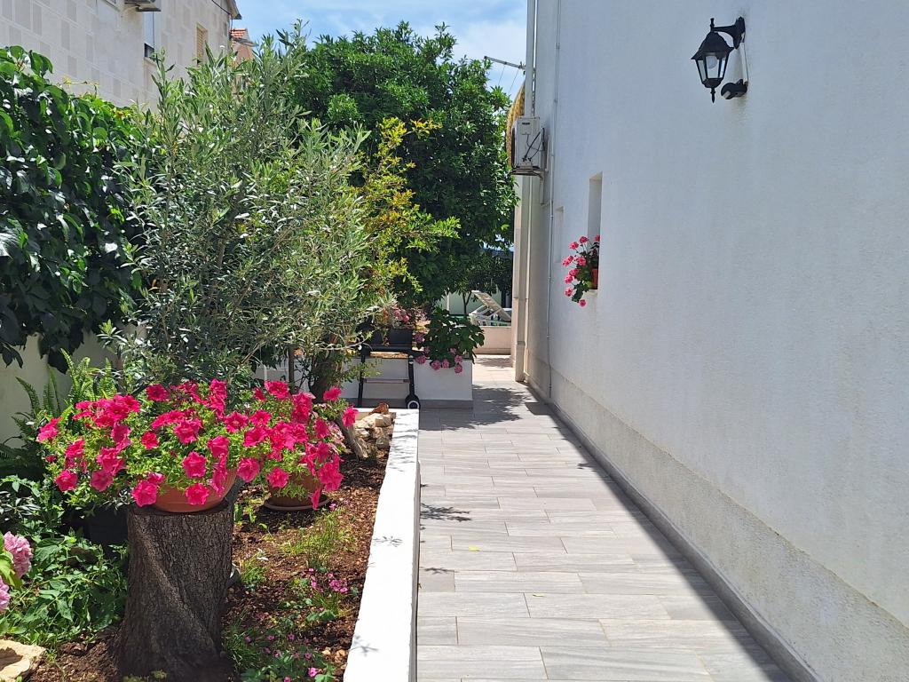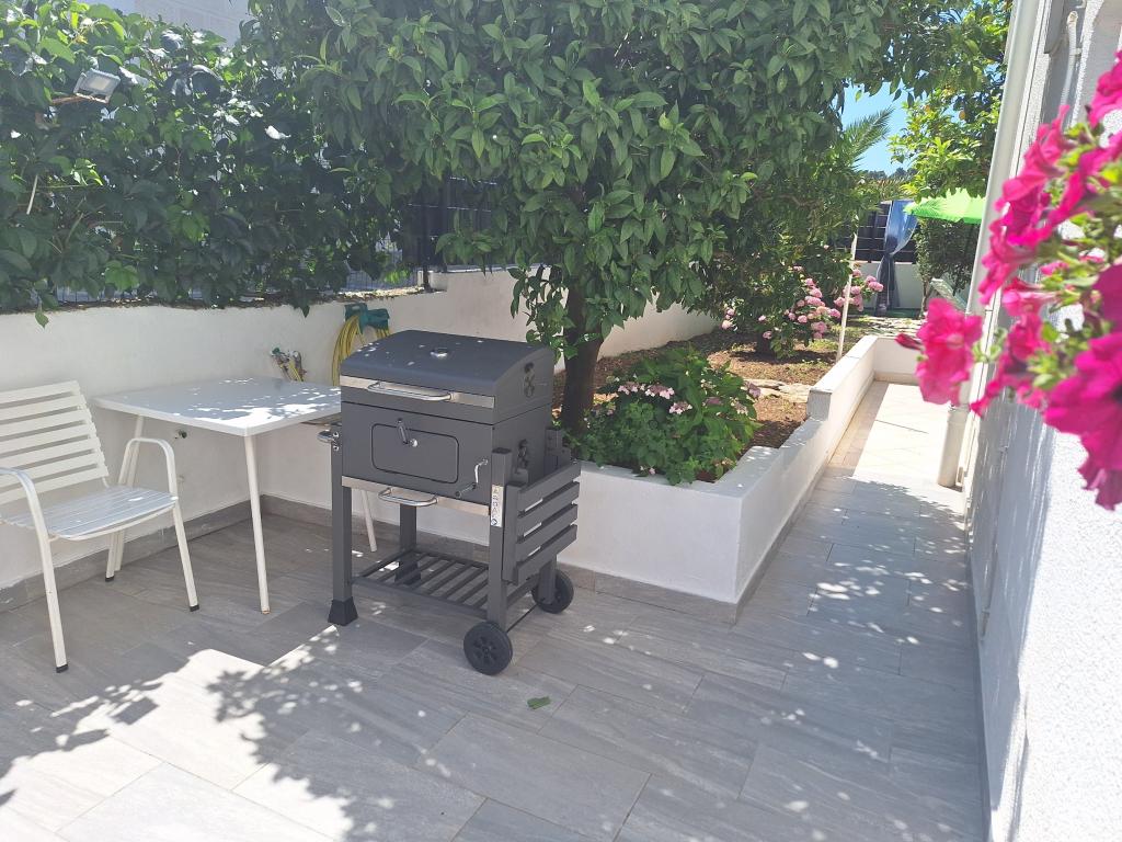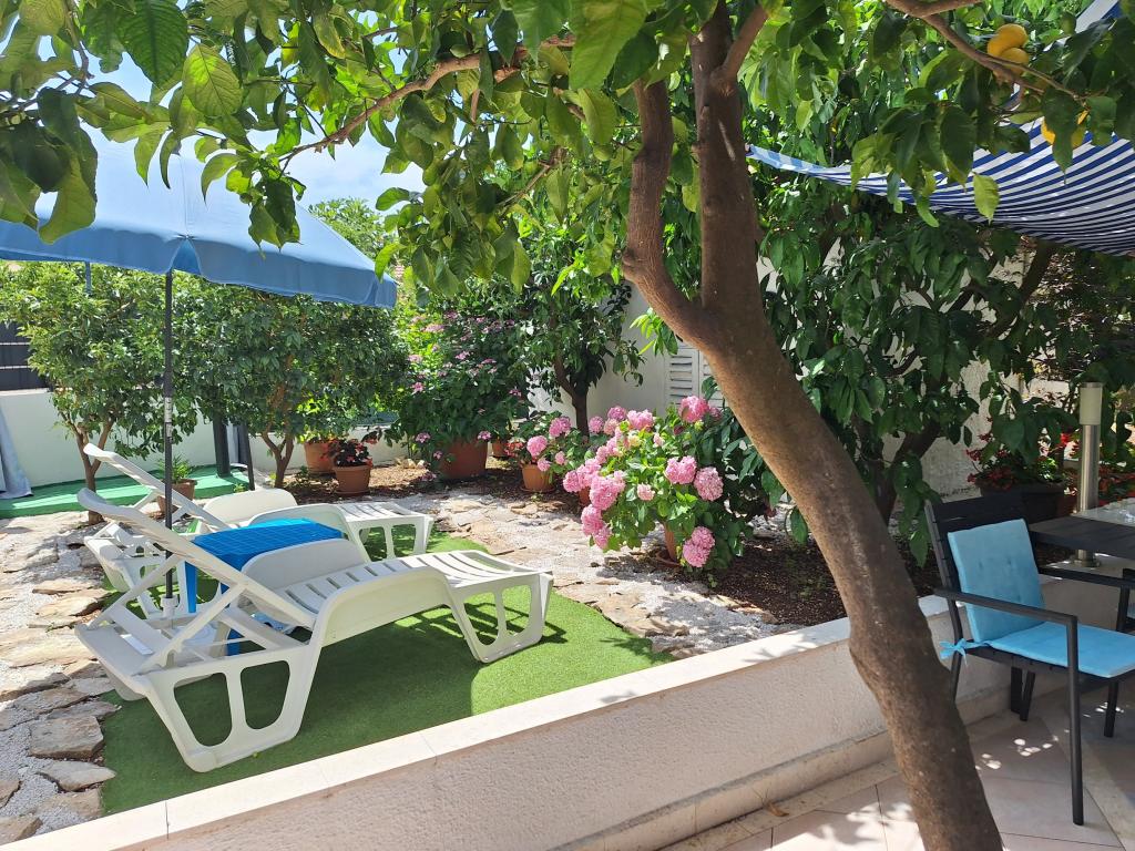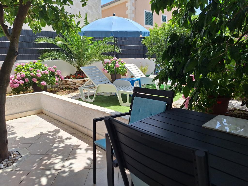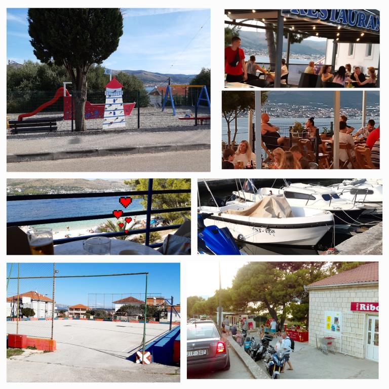 Kiválóan felszerelt (minden benne van az árban, valamint az idegenforgalmi adó is), tágas, Gizella Apartman, családi ház földszintjén, terasszal, udvarral, parkolóval, fekvése csendes, pihentető családi nyaralást kínál a belvárosban. narancs, citrom, mandarin és gyönyörű fenyőerdők árnyalata, melyek a kristálytiszta tenger fölé magasodnak, séta és kerékpározás lehetőségével olajfaligetek és mediterrán gyógynövények mellett. Ön az egyetlen vendég a létesítményben, és külön bejárata van. Kavicsos, sziklás és betonos strandok, parkolóval, üzletekkel, kávézókkal, éttermekkel, gyorséttermekkel, gyerek- és sportjátszóterekkel, buszmegállóval, bankautomatával 5-6 perces sétával elérhetők. Ugyanakkor a mindössze 8 km-re található Trogir ősi városa, az UNESCO védelme alatt, hidakkal összekötve, közel a Krka Nemzeti Parkhoz, a Šolta és Brač szigetekhez, dinamikus kirándulásokat és szórakozást kínál. A repülőtér közelsége megkönnyíti az érkezést, és lehetőség van transzfer megszervezésére. A hely kicsi, csendes és gyönyörű. Szeretettel várunk egy üdvözlő itallal