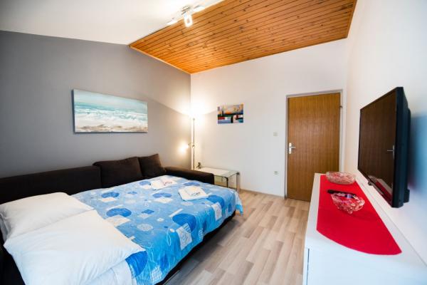 Én ajánlom ezt a szállást. A strand közelében a strand nem zsúfolt és magányos. Az olcsó áruházak is - nem messze. A tulajdonos az érkezési tanácsolta, hogy hol enni és vásárolni. Ő jól beszél angolul, így nincs probléma a közterületek tisztán és rendben létesítmények szinte új és jó minőségű edények és edények. Gyönyörű kilátás az erkélyről, amely a mai napig nem tudom elfelejteni. Közel a gyönyörű Trogir amelyet meglátogatni mindenképp érdemes többször, különösen sötétedés után. Kiszállok a sziget ez a probléma, mint néhány írás, miközben egyesek tudják, a környezet, és fedezze fel az ismeretlen útvonal által használt bennszülöttek. Csendes és nagyon elfoglalt este kívül a kabócák nincs zaj. Összességében azt ajánlom ezt a helyet, és a szállást. Mert bármit is csalódott.