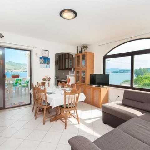 Valóban, egy kevés vizet, és egy privát strand, sok vízi sportok, csónak, rendszeres körutazás a Trogir. Fényűzően felszerelt konyha. Hiányzó mikrohullámú sütő. Egyébként minden rendben