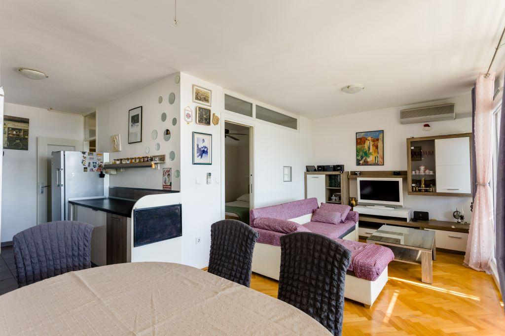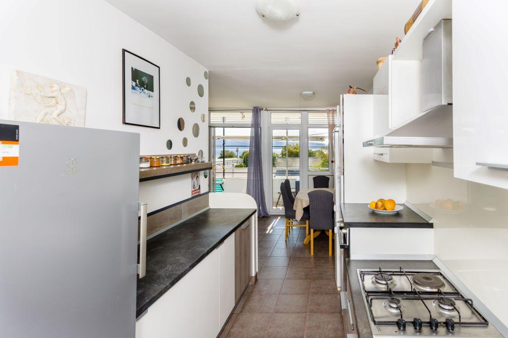 Az apartman Omiš központjában található, és a tengertől az első sorban található, nagy homokos stranddal. A városközpont csak néhány méterre található, csakúgy, mint az éttermek, piacok, gyógyszertárak és minden egyéb szolgáltatás. A Cetina folyó közelében található, így minden olyan tevékenység elérhető az Ön számára (rafting, kajak, zip-line, quad túra, csónakázás...). Parkolási lehetőség az épület közelében, közterületen, 20 €/hét áron. Az apartman tágas, 3 hálószobával, nagy nappalival, nagy kanapéval, 1,5 fürdőszobával és terasszal rendelkezik. 7 fő elszállásolására alkalmas.