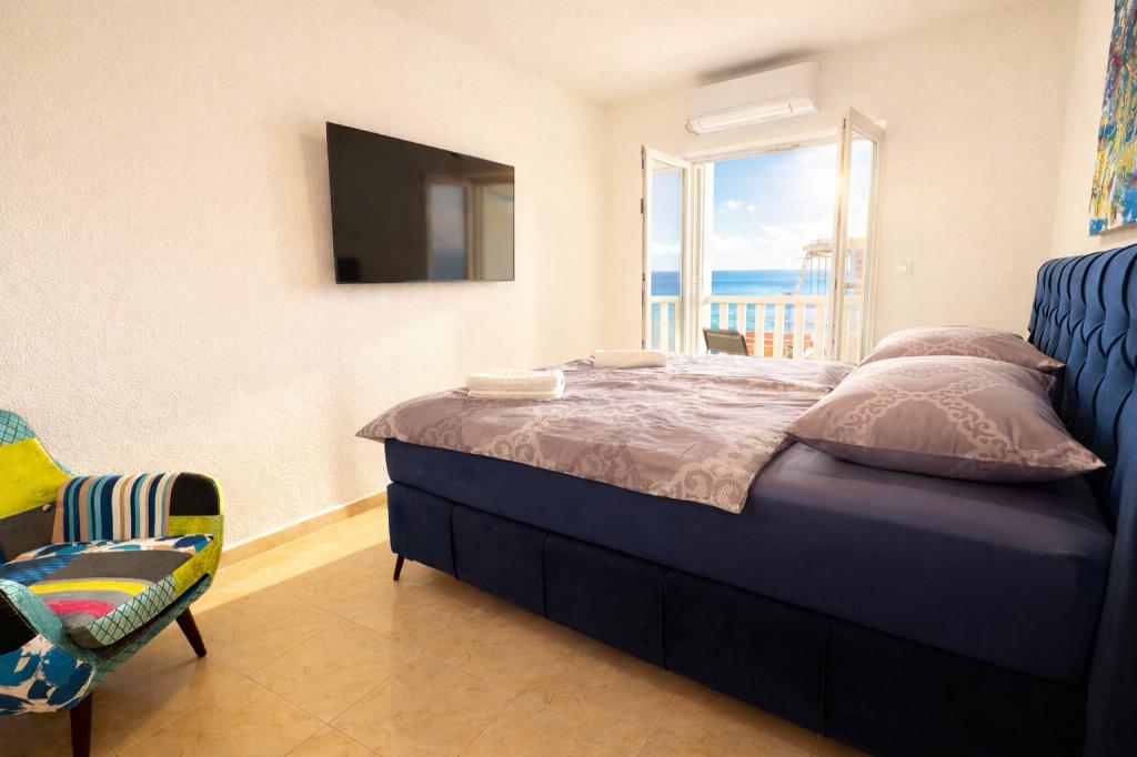 Ébredjen tengerre néző kilátással, egy tökéletes nyaralással Omis közelében. Menedék a tömeg elől, és élvezze a nyugalmat. Mindössze 100 méterre a strandtól és a tengertől. Modern, 2+2 fős kétszintes apartman, ideális egy család számára. Felső emelet gyönyörű kilátással a tengerre, alsó emelet nagy terasz nyugágyakkal, asztallal és grillezővel - a kis oázis. Minden elérhető közelségben van, étterem - 20 méterre, szupermarket - 50 méterre Omiš városától - 2 km-re a tengerparton. Csendes és nyugodt környezet, biztonságos, privát parkolóhely. Kalandos kirándulásokat, valamint privát hajókirándulásokat is kínálunk.