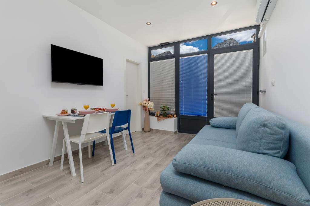 Az Omiš apartman a városközpontban található, 70 méterre a fő városi strandtól. Teljesen új és modern felszereltségű. Minden alapvető szolgáltatás a gyalogos övezetben található. Az apartman címe: Joke Kneževića 6, Omiš.
