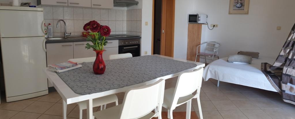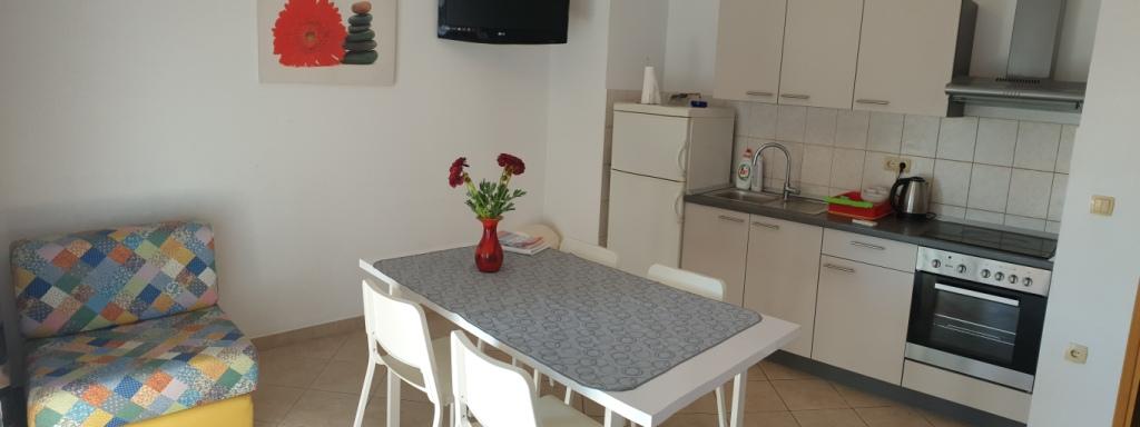 Nediljka asszonynál szálltunk meg, akiről csak dicsérő szavaim vannak. Egy teljesen diszkrét tulajdonos, aki elérhető és nem tolakodó. Az apartman jól felszerelt, a legjobban a mosogatógép nyűgözött le, a zuhanykabin, ami nagyon tágas, a terasz gyönyörű az árnyékban, a Balića Rat csodálatos, annyi gyönyörű strand a közvetlen közelében, és a legközelebbi strand a legtisztább tenger, amit valaha láttam.