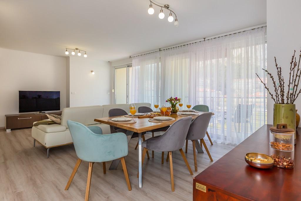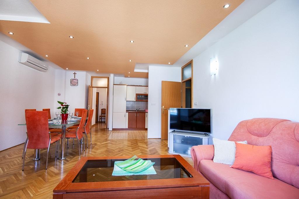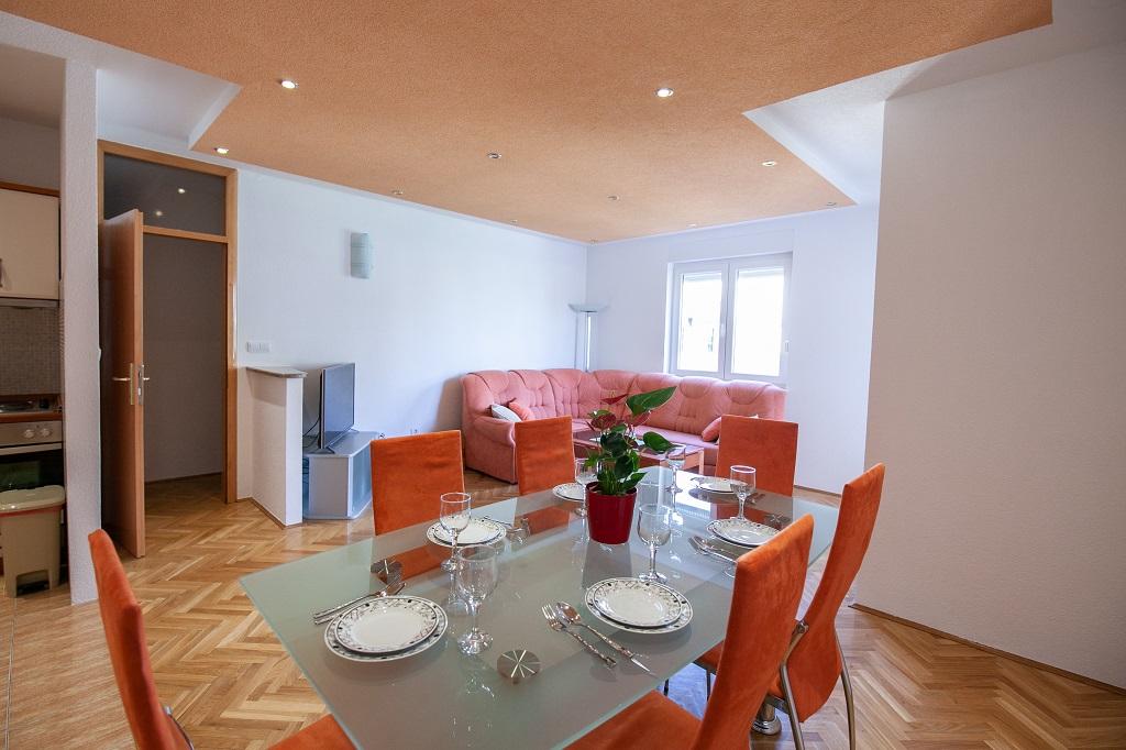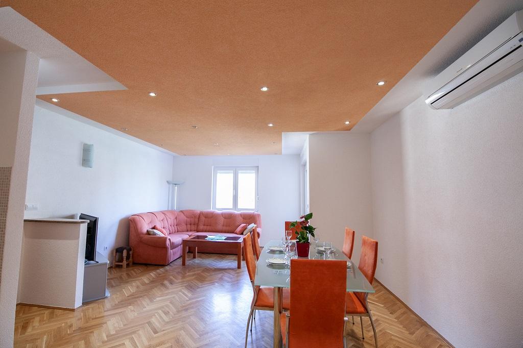 Új, modern és tágas apartmanok Omis egyik luxusépületében, a Cetina folyó és az Adriai-tenger közelében. AP 6 + 2 apartman 3 hálószobával, nappalival, étkezővel, konyhával, 2 fürdőszobával és erkéllyel. AP 4 + 2 apartman 2 hálószobával, nappalival, étkezővel, konyhával, 2 fürdőszobával és erkéllyel.