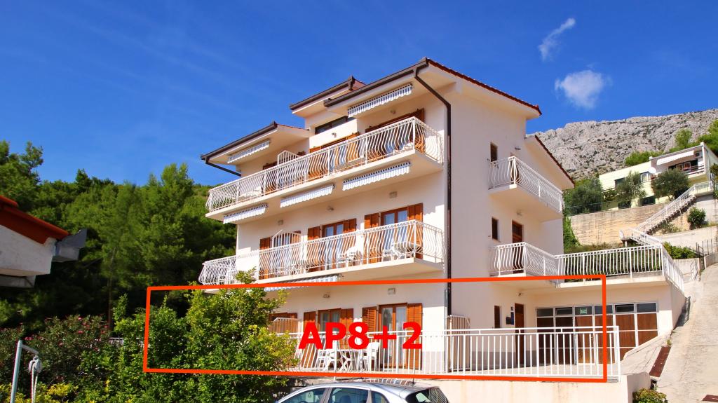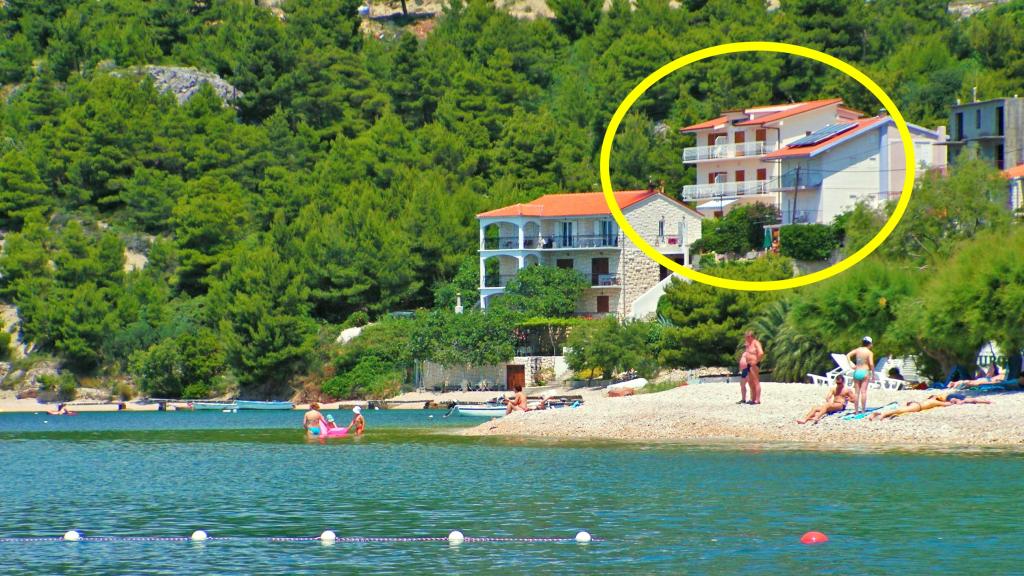 Második sor a tengertől és a strandtól! A falu szélén, csendes helyen! - Kínálatunkban >>> nagyméretű, 8+2 fős apartman található a ház földszintjén 8-10 fő részére - 4 hálószoba, 3 fürdőszoba WC-vel, 1 WC, 3 kis konyha, nagy, 40m2-es terasz!! >>> két 4 fős apartman, mindegyikben 1 hálószoba, 1 hálószoba mini konyhával, 1 fürdőszoba WC-vel, 1 WC, tengerre néző erkély!! >>> két stúdió 2+1 fő részére, mindegyikben 1 mini konyha, 1 fürdőszoba WC-vel, tengerre néző erkély