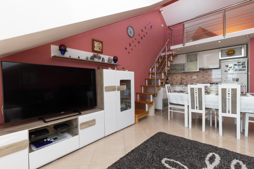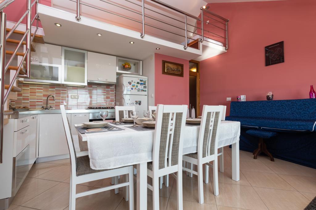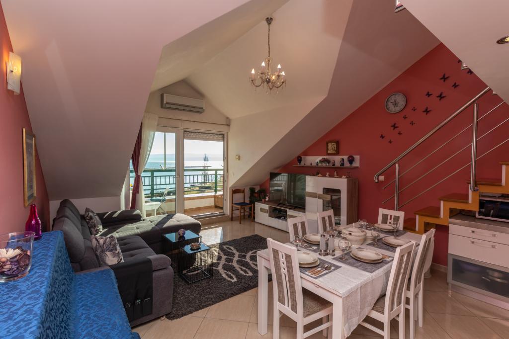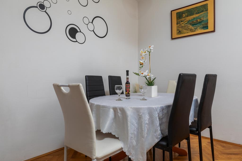 Az A5-ös apartman Omišban, a Četvrt ribnjak 13. szám alatt található, közel a strandhoz és a városközponthoz. Két hálószobával, konyhával, fürdőszobával, nappalival és terasszal rendelkezik. Az A7+1-es apartman Omišban, a Četvrt ribnjak 13. szám alatt található. Tágas apartman kilátással a Cetina folyóra, a tengerre és Omiš óvárosára. Üdvözöljük tágas és kényelmes apartmanunkban, amely ideális nagyobb családok vagy baráti társaságok számára! Az apartman akár 7 + 1 fő befogadására is alkalmas, és 4 hálószobából, 2 modern, zuhanyzós fürdőszobából, teljesen felszerelt konyhából és tágas és kényelmes nappaliból áll. Minden könnyen elérhető, üzletek, gyógyszertárak, orvosok, sportcsarnokok, egy gyönyörű új sétány, amely Omišt és Dugi Ratot köti össze, Omiš óvárosa változatos gasztronómiai kínálattal és helyi specialitásokkal, a kalandvágyók számára pedig rafting és zipline lehetőségek állnak rendelkezésre. A szállás különleges varázsát az erkély adja, ahonnan gyönyörű panorámás kilátás nyílik a Cetina folyóra, az Adriai-tengerre, a Fortica erődítményre és egész Omišra - tökéletes hely egy reggeli kávéhoz vagy egy esti pihenéshez.