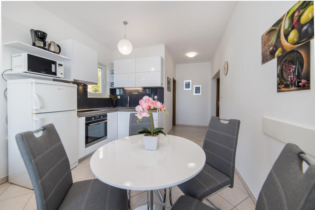 Bár ebből a lakásból nincs közvetlen kilátás a tengerre, amit mindenki szeretne és keres, minden más pótolja az elvárásokat! A hirdetésben szereplő képek hitelesek, minden tiszta, karbantartott. A tulajdonos segítőkész, kedves és mindig az Ön szolgálatában áll! Wi-fi lefedettséggel rendelkezik a telken, a parkoló a legtöbb napon az olajfák alatt nyújt árnyékot, a medence és a napozóágyak tisztaak, a jacuzzi igazi felüdülés. A strand közelsége 200 m-re található, ahol egy csodálatos kis kávézó várja a délutáni felfrissülést a tiszta tengerben fürdés után. A délelőtt pedig a medencében való úszásra és a napernyők alatti hűsölésre van fenntartva, míg a gyerekek a medencében szórakoznak (valamint azok, akik így érzik). Már két éve jövünk egymás után, és nagyon meg vagyunk elégedve a szállással és a házigazdákkal, valamint a természettel, mert az apartmanokat fák, rozmaring bokrok, agavák és oleanderek veszik körül.