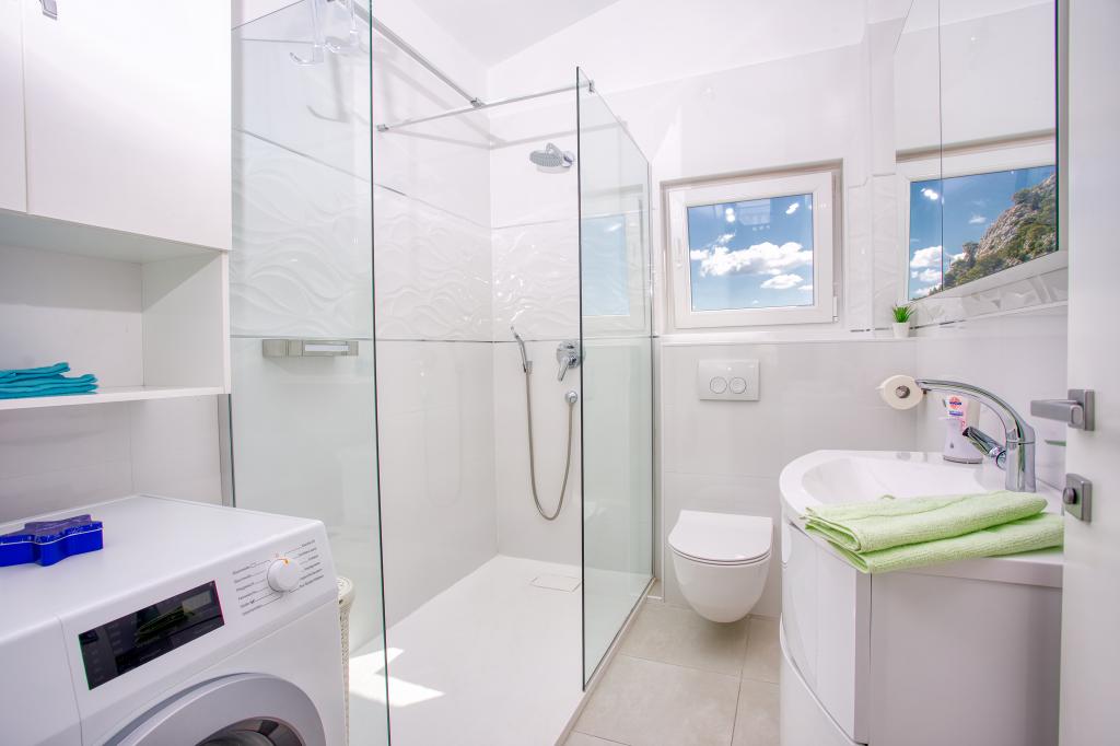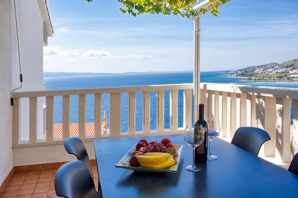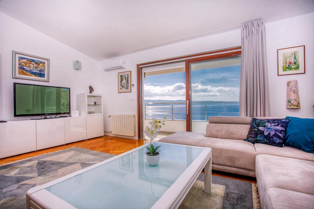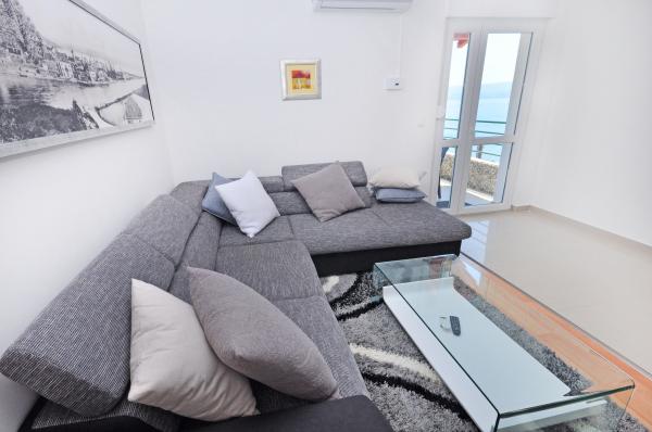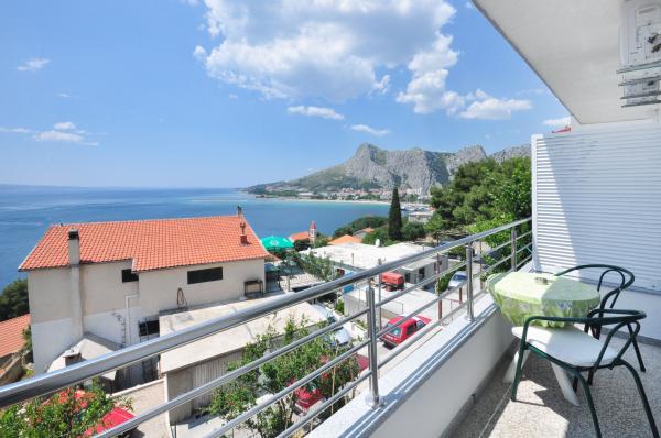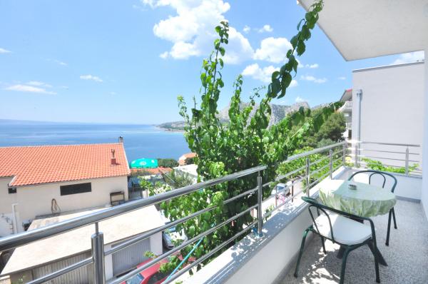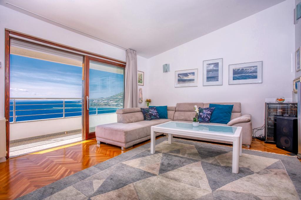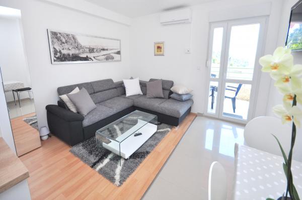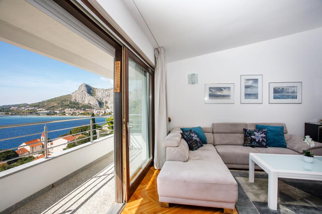 modern apartman egy csendes területén Omis mediterrán növényzet veszi körül, kilátással a tengerre.