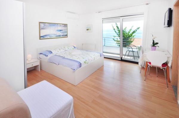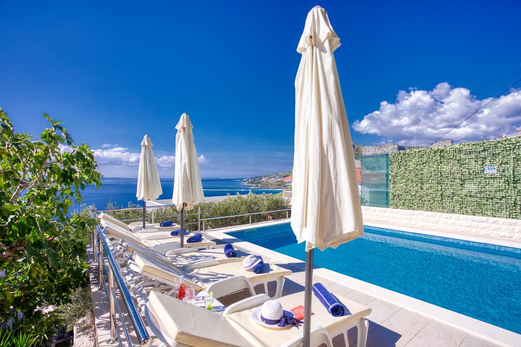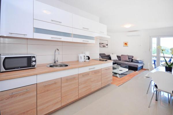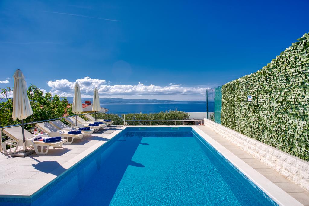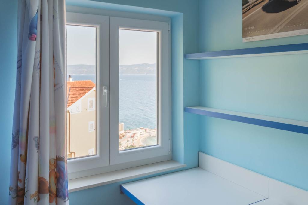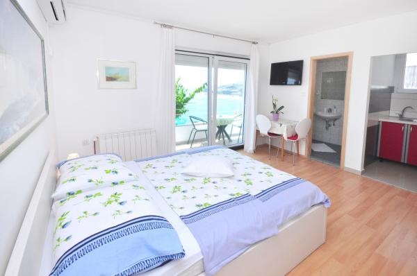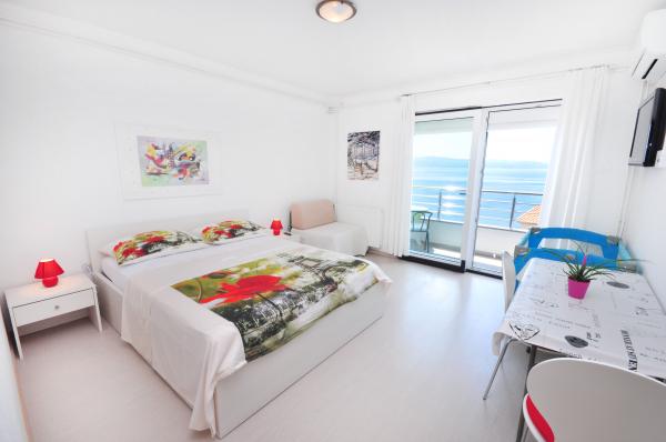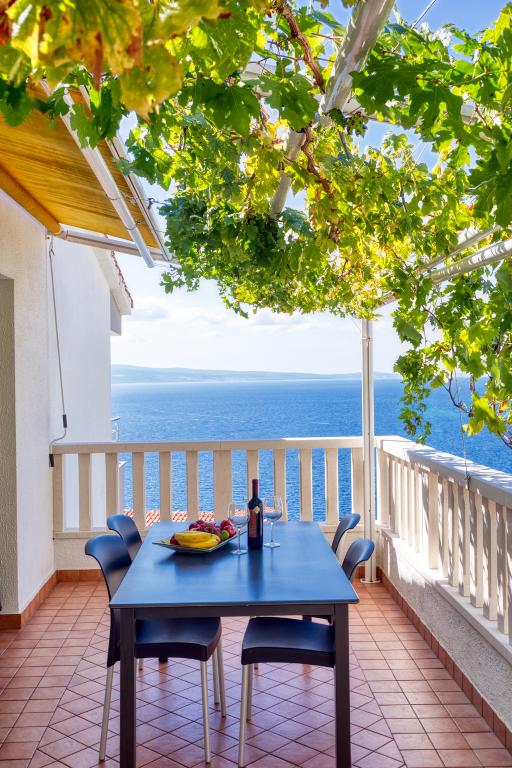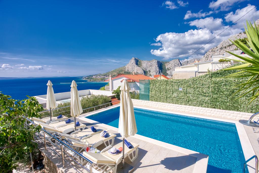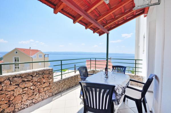 modern apartman egy csendes területén Omis mediterrán növényzet veszi körül, kilátással a tengerre.