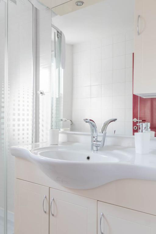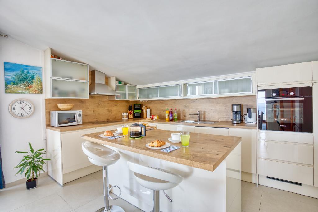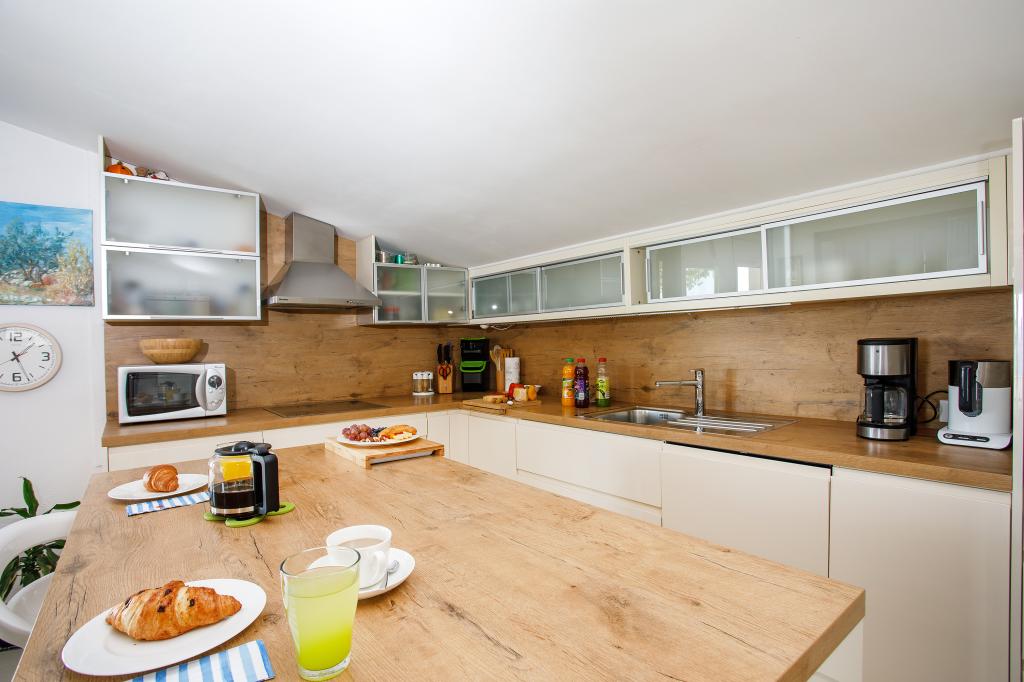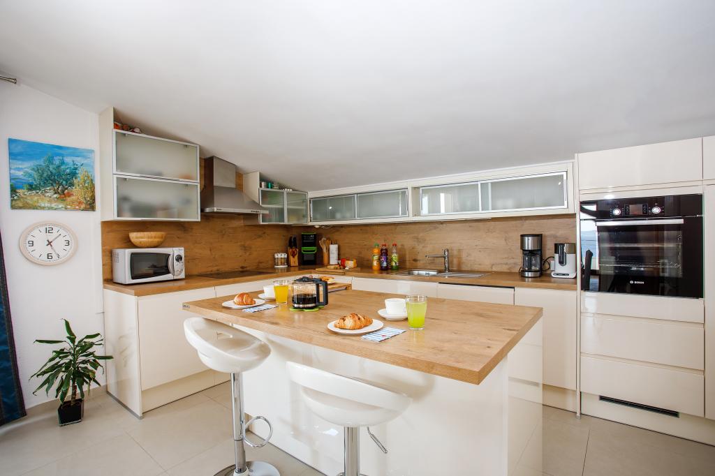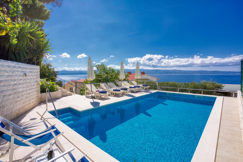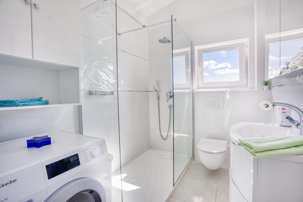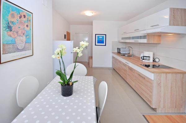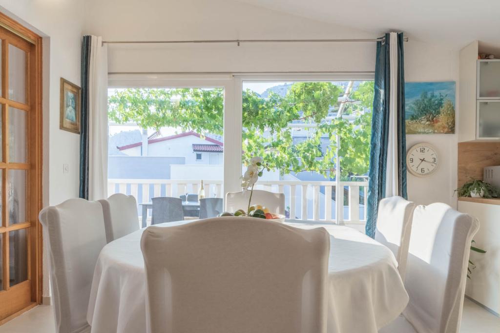 modern apartman egy csendes területén Omis mediterrán növényzet veszi körül, kilátással a tengerre.