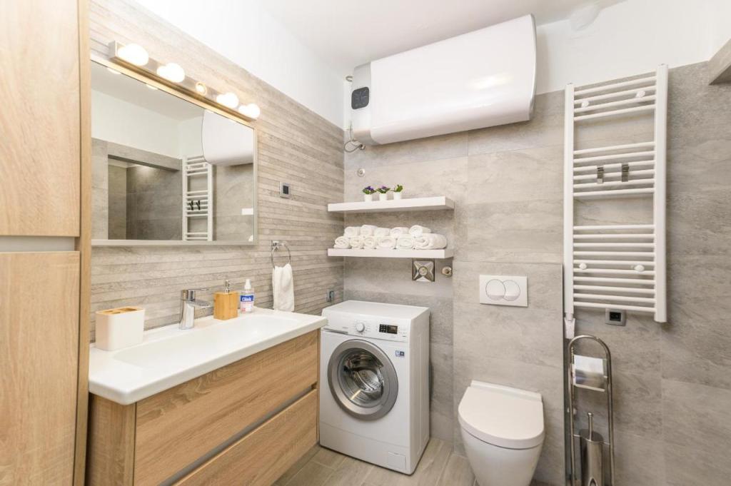 Modern, újonnan berendezett apartman, rendkívül kellemes környezet, fényűzően berendezett fürdőszoba, kényelmes szoba franciaággyal 2 fő részére, teljesen felszerelt új konyha, tágas nappali luxus kanapéval, amely 2 fő elszállásolására alkalmas. TV 160 cm/netflix, nagy sebességű internet, Opatija csendes részén, 800 méterre a tengertől és Abbázia központjától, 70 méterre a Spaar bevásárlóközponttól (10 perc séta).