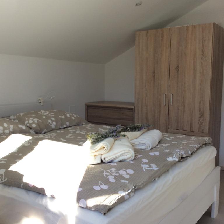 Két apartman bérelhető a felső emeleten a következő felszereltséggel: • Két hálószobás apartmanok • Tengerre néző erkély • Nappali kényelmes kanapéággyal • Teljesen felszerelt, nyitott konyha (lásd a felszereltséget) • Étkező • Hálószoba (egy franciaágy) • Zuhanyzó, WC • Légkondicionáló • Műholdas TV • Internet WLAN • A WC-papír, a szappan és a mosogatószer benne van az árban. • A törölközőket és az ágyneműt 7 naponta cserélik, és ezek benne vannak az árban. A számos strand és a gyönyörű természet mellett a környék számos tevékenységi lehetőséget kínál. A történelmi Korčula-sziget ("Kis Dubrovnik") mindössze 15 perces hajóútra található, a Pelješac-félszigeten található borvidék borkóstolót kínál a pincészetekben, a közeli Viganjban pedig szörfösök és kite-szörfösök is lehetnek. Orebic bejáratánál található egy kemping, ahol különféle sporttevékenységekben vehet részt.
