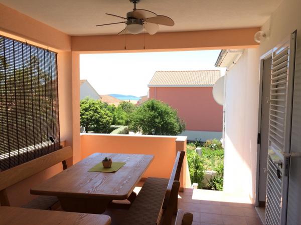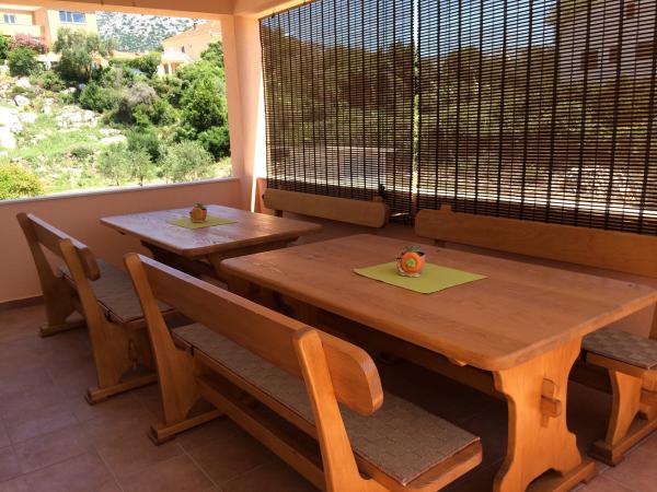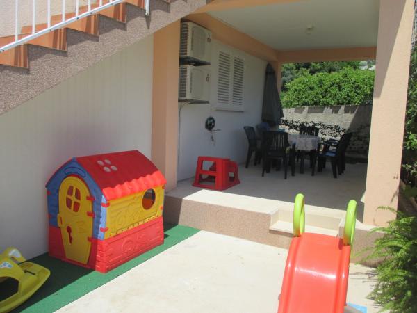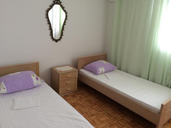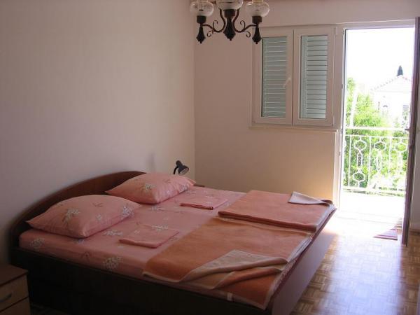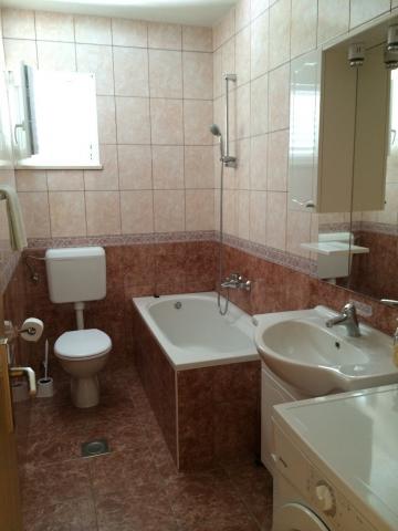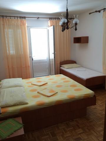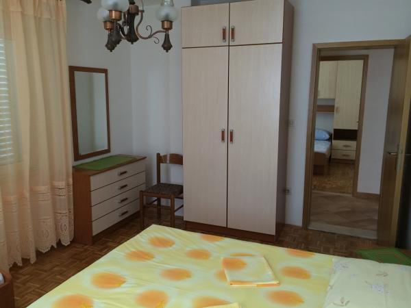 A családi házban egy nagy lakás található. Teljesen felszerelt. Külön bejárattal és parkolóval rendelkezik. A ház két perc sétára található a strandtól, a tengertől, az üzlettől és a banktól. Az apartman (8+2) az első emeleten található, és négy hálószoba (két háromágyas és két kétágyas), egy nagy konyha, két fürdőszoba WC-vel (az egyikben mosógép), egy nagy erkély és egy nagy terasz található. Az apartman felszereltsége: klíma (nagy klíma a folyosón), Wi-Fi internet, mikrohullámú sütő, tűzhely, sütő, mosogatógép, mosógép, nagy hűtőszekrény, minden szükséges edény és ágynemű. Az ágyneműt hetente egyszer cserélik. A bérleti díj tartalmazza az adót, a Wi-Fi-t, a parkolást és a légkondicionáló használatát.