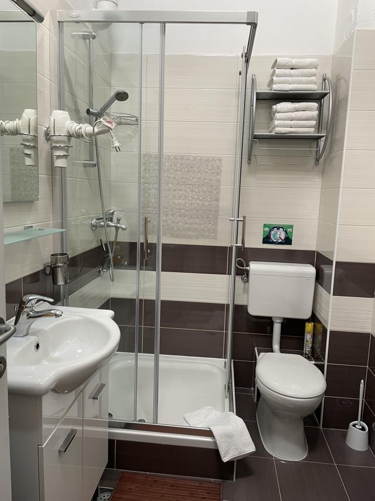 Az apartmanban egy franciaággyal felszerelt hálószoba található, ezen kívül egy alvásra alkalmas kanapé is található. A vadonatúj beépített konyhában kerámia főzőlap, mosogatógép, tűzhely, kávéfőző és mikrohullámú sütő található. A lakásban egy asztal és négy kényelmes szék is található. A WC-ben zuhanykabin, wc csésze, hajszárító és mosógép található. A lakásban jó minőségű járólap burkolat, a hálószobában fehérre pácolt parketta. Az ár tartalmazza a távozás utáni takarítást, az idegenforgalmi adót, a villanyt, a vizet, a légkondicionálást és a fűtést. A nálunk eltöltött idő alatt az apartman mellett ingyenes internet-hozzáférés (wi-fi) és ingyenes parkolóhely (4. sz.) áll rendelkezésére. Várjuk üzenetét!
