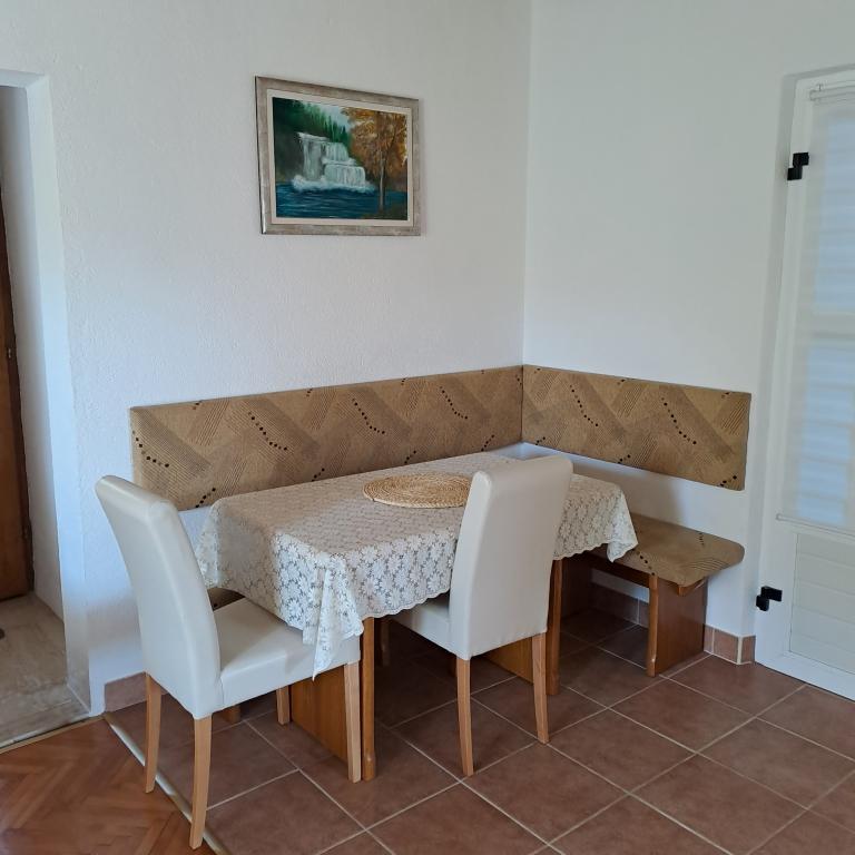 Nagyon szép házigazdák. Nagyon gyönyörű kilátás .. Közel a strandok és konoby. és templom. A lakás alacsony elhelyezkedése miatt nem kell légkondicionálni. Egy nagy, kényelmes parkoló. A konyhában minden megtalálható. A fürdőszobában mindent megtalál, amire szüksége van, és még ennél is több. Nagyon ajánlom.