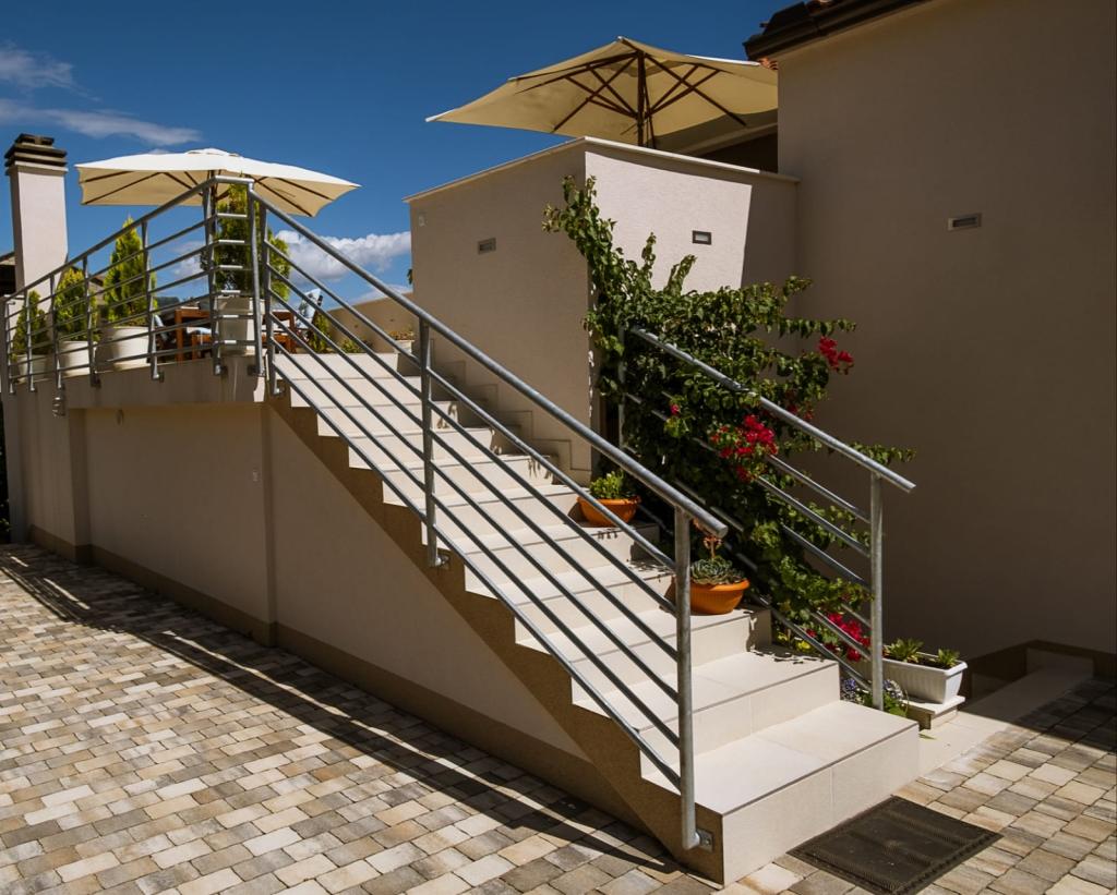 Két új, modern berendezésű apartman Orebić csendes részén, mindössze 5 perces sétára a tengertől és a strandtól. Minden apartmanhoz saját erkély tartozik, kilátással a kertre, és egy nagy terasz, ahonnan a Szent István-hegyre nyílik kilátás. Illés. Az apartman ideális gyermekes családnak vagy két párnak. Nagyobb csoportok számára (8-10 fő) mindkét apartmant lefoglalhatja, és élvezheti a társasági életet. A lakásban két szoba, két fürdőszoba, egy nappali és egy konyha található. Minden szobához saját fürdőszoba tartozik küszöb nélküli zuhanyzóval és mosógéppel. A nappaliban kanapé áll rendelkezésre. Igény esetén bölcsőt/kihajtható ágyat kínálunk. A konyhában többek között mosogatógép, vízforraló, kávéfőző és turmixgép is található. Grillezésre közös helyiség használatát ajánljuk. Gyors wi-fi és Android TV a kívánt internetes tartalom elérésével. Minden szobában és a nappaliban légkondicionálás biztosított. Az épületen belül ingyenes parkolási lehetőség van, a kívánt bejelentéssel. Minden tőlünk telhetőt megteszünk annak érdekében, hogy az Ön tartózkodása kellemes legyen!