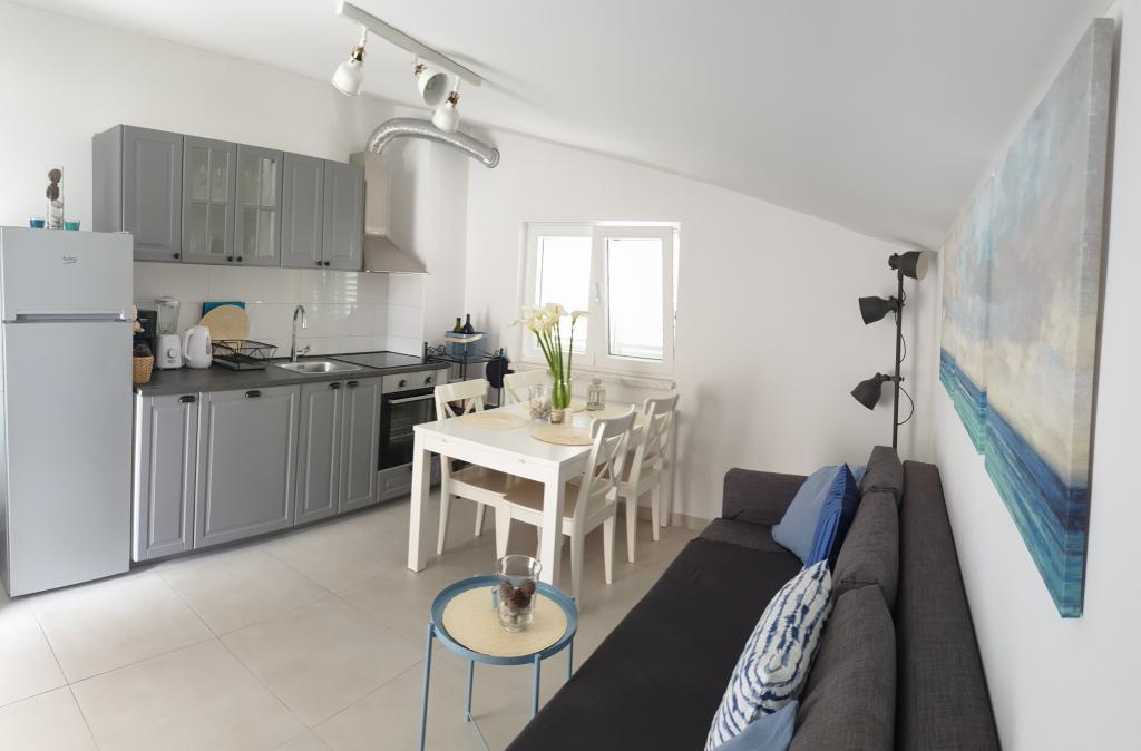 Remek lakás. A konyha teljesen felszerelt. Két gyönyörű hálószoba kényelmes ágyakkal és mindegyikhez tartozik fürdőszoba. A családommal nagyon elégedettek voltunk, ez a legjobb szállás Horvátországban. Bort fogadtunk üdvözlő italként, nagyon jó. A tulajdonos segít, köszönöm a finom palacsintákat. Üdvözlettel ajánlom