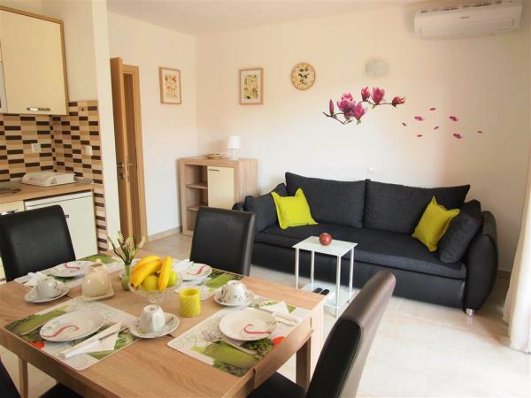Új, tiszta apartmanok, minden amire szükséged van, jó konyha és berendezések, kiváló elhelyezkedés, csendes helyen, 5 perc sétára a strandtól, 10-15 perc sétára a városközponttól. Barátságos, válaszadó házigazdák. Ajánlott.