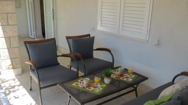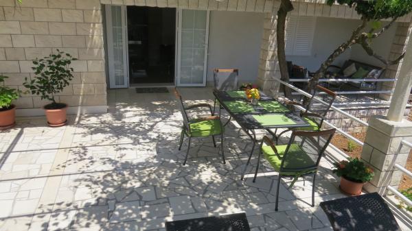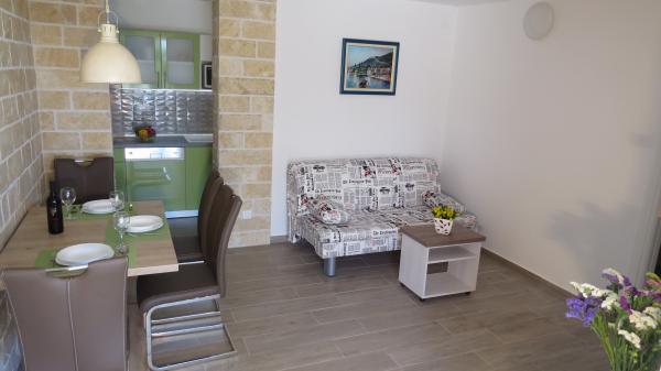 Az apartmanok Mokalo kis falujában találhatók, a Pelješac-félszigeten, Orebićtől 3 km-re keletre.